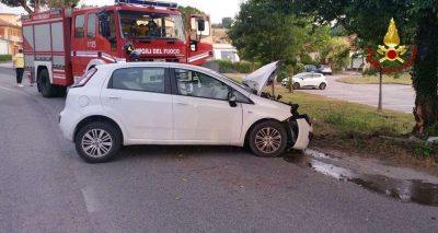 Fuori strada all’alba con l’auto a Pianello di Ostra: conducente all’ospedale. Nella prima mattina di oggi, verso le 5.20, i vigili del fuoco di Arcevia sono intervenuti per soccorrere l’automobilista coinvolto nell’incidente nell’incidente stradale. Per cause in fase di ricostruzione, l’uomo alla guida di una Fiat Punto, ha perso il controllo del mezzo urtando violentemente un albero al lato della strada. I vigili del fuoco hanno estratto il conducente affidandolo poi alle cure del personale del 118 che lo ha trasferito in ambulanza al pronto soccorso dell’ospedale di Torrette. In seguito la squadra dei vigili del fuoco  ha messo in sicurezza la vettura alimentata a gas metano e lo scenario dell’incidente.