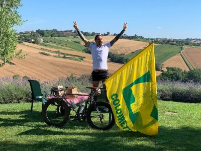 Vittorio Brumotti fa tappa nelle Marche. Ieri mattina, il passaggio del ciclista sul territorio regionale nell’ambito del  tour che per il secondo anno consecutivo vede il campione di road bike freestyle attraversare in bici l’Italia, alla scoperta delle bellezze nostrane. La partenza, lo scorso 16 giugno da Milano. L’arrivo, il 4 luglio, a San Giovanni Rotondo. Ieri, si è fermato a Belvedere Ostrense, nell’agriturismo Tenuta Belvedere di Romina Pierelli, azienda affiliata a Coldiretti Marche.