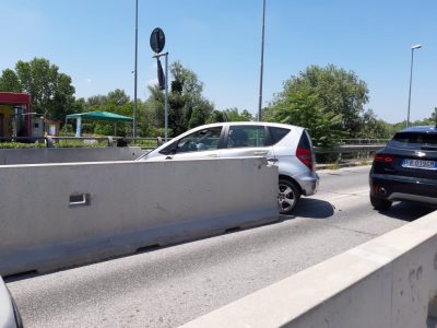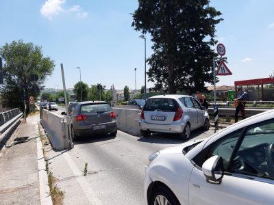 Ennesimo incidente oggi nel primo pomeriggio sul ponte San Carlo a Jesi, in corrispondenza del restringimento di carreggiata con i blocchi di cemento che impediscono l’ingresso in città ai mezzi pesanti che superano i 35 quintali per una questione di sicurezza per via del ponte deteriorato. A urtare le barriere, una donna alla guida di una Mercedes classe A, che per fortuna è rimasta illesa ma ha creato un vero e proprio caos viabilità. Non è la prima, purtroppo non sarà neanche l’ultima. L’auto, finita contro le barriere in uscita dalla città, ha dapprima divelto un segnale stradale poi ingombrato la carreggiata finendo di traverso. E questo ha provocato lunghe code sia sul ponte stesso che da via Ricci e via del Verziere. Sul posto sono intervenute due pattuglie dei Carabinieri e l’ambulanza della Croce verde anche se l’automobilista ha rifiutato il trasporto in ospedale. Enormi disagi per il traffico che a quell’ora è sempre particolarmente sostenuto. Il traffico è stato deviato a senso unico alternato fino alla rimozione della Mercedes. Sul posto anche il comandante della Compagnia Carabinieri di Jesi capitano Vergari che insieme ai suoi militari ha cercato di gestire l’emergenza viabilità che si era creata.