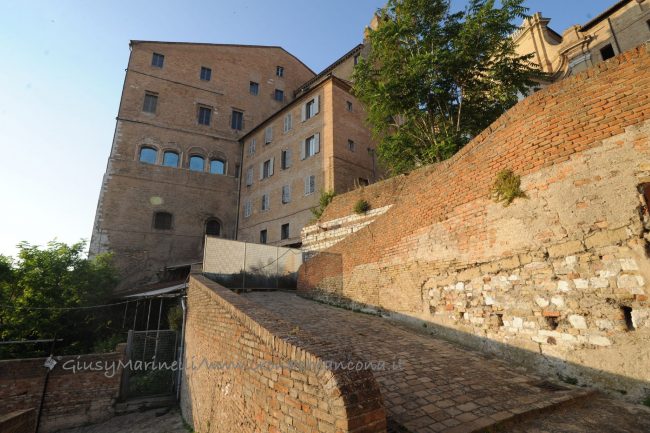 Dalla sporcizia e dal luridime, dai topi che scorazzano indisturbati, tanto che uno è entrato dalla finestra nell’abitazione di una residente. Dallo stato ugualmente pietoso e vergognoso in cui versa la zona con più secoli sulle spalle lungo via Rupi. Quella dove campeggiano tre stupendi arconi in pietra, un tempo bianchi, sormontati dal muraglione in cui sono integrati che arriva fino alle ringhiere di piazza Stracca. Delimitano altrettanti ambienti voltati in cui a suo tempo furono, con un certo gusto, posizionati decine e decine di proiettili sferici di pietra, quelli che i difensori dell’Ancona libero Comune scagliavano con le catapulte contro i nemici che attaccavano dal mare. Si sono trasformati in caverne, dalle volte pendono fasci di vegetazione. Lerci e diroccati, come il corridoio calpestabile che gli scorre di fronte.