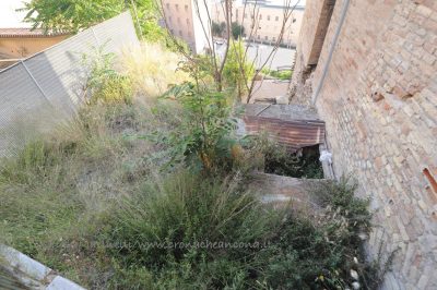 Erbacce, crepe e sporcizia anche di fronte e dentro gli ambienti voltati con apertura ad arcone
