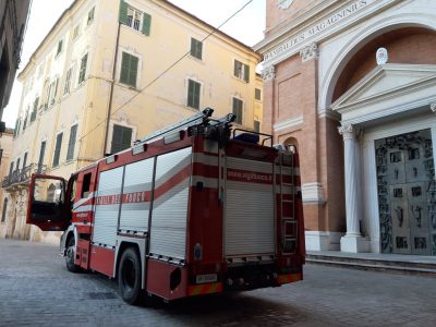 Il mezzo dei vigili del fuoco fermo in piazza Federico II