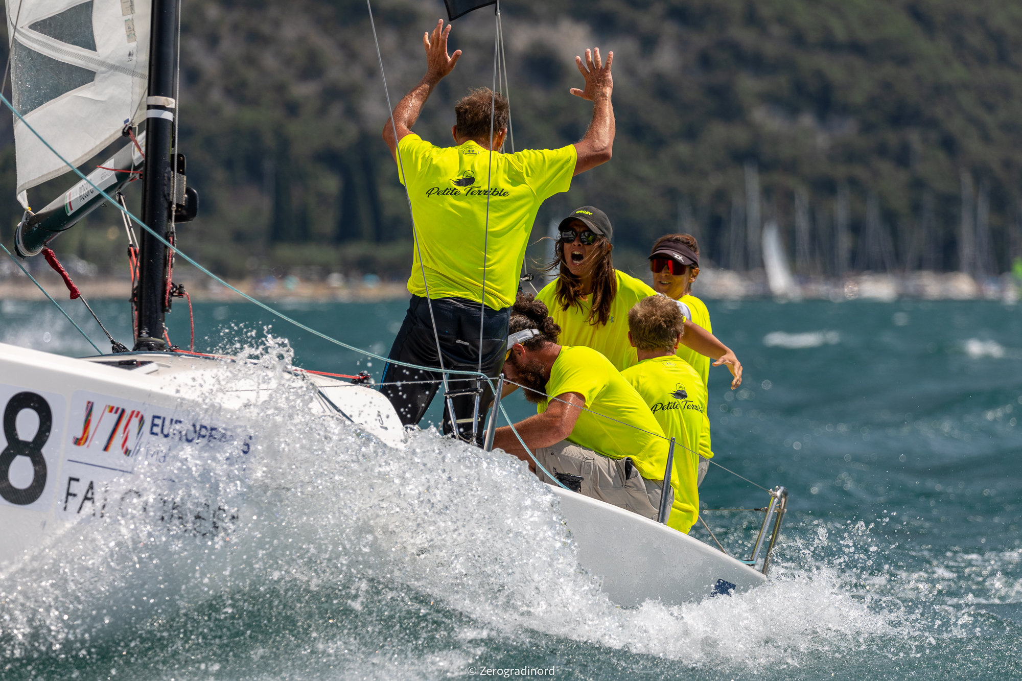 Dopo cinque intense giornate di regate e quattordici prove disputate come da bando di regata, l’equipaggio di Petite Terrible-Adria Ferries guidato da Claudia Rossi sale ancora una volta sul gradino più alto del podio europeo, tornando a conquistare il titolo che già aveva fatto suo nei Campionati Europei di Kiel nel 2016 e Hamble nel 2017. L’equipaggio di Petite Terrible-Adria Ferries, terzo alla vigilia del gran finale, ha mantenuto i nervi saldi nelle tre prove odierne e, con parziali di 4-6-2, è risalito in vetta alla classifica generale, lasciandosi alle spalle i Tedeschi di Mission Possible, medaglia d’argento, e gli Italiani su J-Curve di Mauro Roversi, terzi.