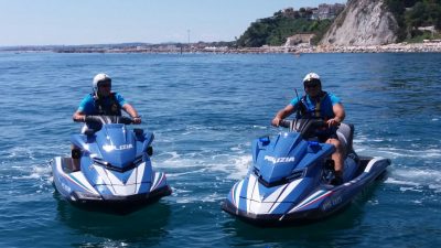 Gettano l’ancora per fare il bagno e, quando tornano sul gommone, non riescono più a tirala su: bagnanti soccorsi dalle moto d’acqua della polizia, Manta 1 e Manta 2. L’intervento, ieri mattina al largo di Portonovo, attorno alle 12,30. I due avevano gettato l’ancora per fare il bagno ma non riuscivano più a tirarla su in quanto si era incagliata al fondale; inoltre, in quel momento, il moto ondoso era particolarmente forte a causa del vento. In pochi minuti gli agenti riuscivano a risolvere il problema dando modo ai due bagnanti di raggiungere la costa.