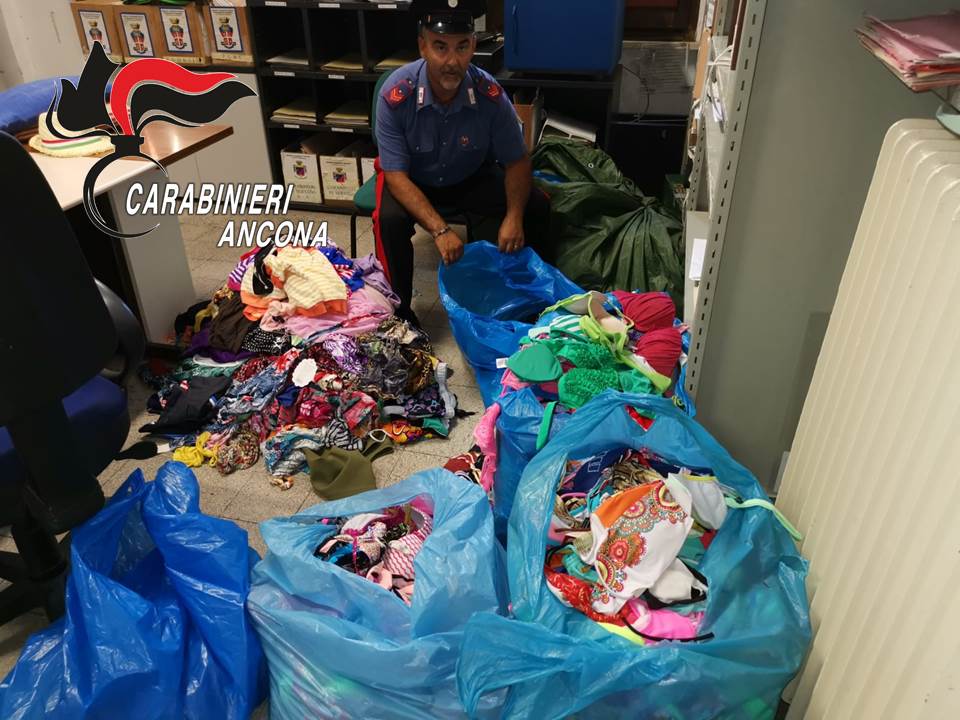 In questo contesto i Carabinieri della Compagnia di Senigallia sul tratto di spiaggia da Lungomare Mameli a Lungomare Dante Alighieri, con alcune pattuglie e militari camuffati da normali bagnanti, hanno setacciato la “spiaggia di velluto” controllando 12 venditori ambulanti stranieri. Tutti sono risultati in regola sul territorio nazionale. Quattro di loro comunque sono stati sorpresi ad esercitare l’attività di commercio su aree demaniali marittime in forma itinerante senza essere in possesso della prescritta autorizzazione amministrativa e nulla-osta rilasciato dal Comune di Senigallia. Si tratta di cittadini originari del Bangladesh e del Pakistan residenti a Milano e in provincia di Pesaro-Urbino, che per il periodo estivo si sono trasferiti nella provincia di Ancona. Nel corso del servizio, nei confronti dei predetti venditori abusivi sono state contestate sanzioni amministrative inerenti a violazioni alle norme del commercio su aree pubbliche per complessivi 20.000 euro. Inoltre sono stati sottoposti a sequestro amministrativo: 19 noci di cocco, 14 braccialetti; 13 collane; 621 pezzi di bigiotteria; 57 vestiti da donna; 4 borse da mare; 73 cappelli da mare; 635 costumi da bagno; 1254 accessori per capelli. La mercanzia, sulla base dei prezzi praticati sulla spiaggia, avrebbe consentito di realizzare un profitto complessivo intorno ai 13.000 euro. La merce sequestrata sarà consegnata alla depositeria comunale.