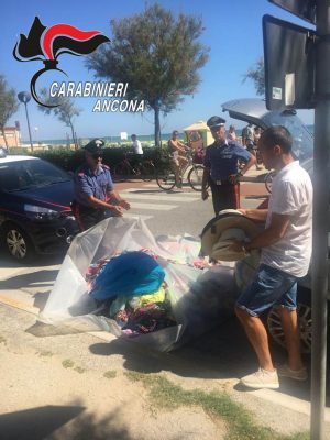 Con l’arrivo della stagione estiva sono iniziati i controlli sulle spiagge da parte dei Carabinieri del Comando Provinciale di Ancona finalizzati a contrastare l’abusivismo commerciale, la contraffazione e ha garantire il rispetto delle regole degli assegnatati si regolare licenza alla vendita sul litorale. Sulla base dell’esperienza maturata negli anni scorsi, nell’ambito dell’iniziativa Ministeriale “Spiagge Sicure – estate 2019”, è stata avviata una specifica campagna sugli arenili, nel tratto compreso tra Senigallia e Numana. I Carabinieri delle Compagnie di Osimo, Ancona e Senigallia già dall’ultimo Week-End hanno setacciato l’intera costa della provincia anconetana che interessa i comuni di Numana (e la frazione di Marcelli), Sirolo, Ancona (Passetto, Portonovo, Palombina), Falconara Marittima (Palombina Vecchia e Rocca Priora) Montemarciano e Senigallia (e la frazione di Marzocca).