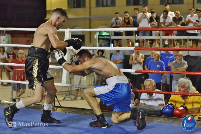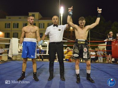 Si è disputata nella centralissima Piazza Pertini di Ancona la riunione pugilistica in notturna, organizzata dalle società UPA e Nike di Fermo. Dieci sono stati i match combattuti davanti ad un folto pubblico che ha esaurito tutti i posti delle gradinate allestite intorno al ring. Il match più atteso è stato quello tra i professionisti supergallo Mattia Occhinero dell’Upa Ancona e l’albanese Serxho Kikrri. I due pugili al loro secondo match da pro si sono confrontati sin dal primo round con colpi precisi e serrati. Quando l’incontro appariva equilibrato, l’anconetano Occhinero sferrava con precisione e potenza un paio di ganci destri al fegato di Kikrri tanto da piegarlo in ginocchio e costringere ad appena al secondo round, l’intervento dell’arbitro Sauro Di Clementi che dopo aver contato l’albanese e constatato l’impossibilità di continuare il match proclamava la vittoria del dorico Occhinero per KO tecnico. Breve ma intenso match disputato dall’atleta dell’UPA che ha evidenziato una eccellente mobilità sulle gambe, ottima tecnica ed una potenza che seppur vista a sprazzi è parsa in crescendo e comunque risolutiva dell’incontro. Piacevoli gli altri nove match dilettantistici tra pugili provenienti oltre che dalle Marche, dall’Abruzzo e addirittura dalla Svizzera. Due sono stati i match femminili che hanno determinato la vittoria di Alessia Corradetti della Nike Fermo su Michelle Verena, Pugilistica Ticinese e Fiori Laura, Bove Ring Gym su Patrizia Borgheggiani, Pugilistia Di Giacomo. Match sfortunato per l’anconetano Alessandro Baldoni che sebbene aveva iniziato una eccellente prestazione ha dovuto rinunciare alla vittoria per una ferita accidentale alla fronte, a favore dell’avversario Leonardo Piangerelli di Fermo. Accesi e combattuti i match tra Ricki Di Mare dell’Upa che ha vinto su Matteo Mancini dell’Audax Fano e Marcello Di Gennaro, Accademia Pugilistica 1923 che ha battuto Monteiro Da Silva, Pugilistica Ticinese. Equilibrati gli altri combattimenti tra El hadij Ousmane, Upa Ancona vincente su Marco Elisei, Kanappa BC; Davide Di Gironimo, Lionheart, vincente ai punti su Francesco Marconi, Upa; Montagnoli Luca, Nike Fermo vincente ai punti su Francesco Silla Flati, Pugilistica Di Giacomo; Marco Bagalini, Pugilistica Di Giacomo vincente ai punti su Michele Santoli, Audax Fano.