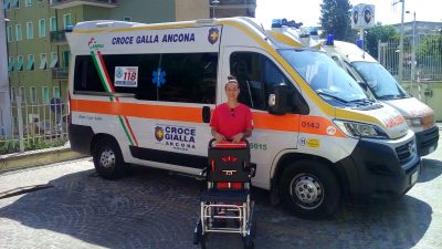 «Negli ultimi periodi di vita mio marito ha avuto bisogno della Croce Gialla di Ancona, ma non sempre la seggiolina in dotazione all’ambulanza riusciva ad entrare nell’ascensore costringendo i volontari a fare tutte le scale a piedi. Una situazione che faceva soffrire mio marito che una volta mi disse che era sua intenzione premiare questi ragazzi per il lavoro che facevano». A parlare è la moglie di Giancarlo Cori venuto a mancare qualche anno fa. A distanza di tempo la vedova si è ricordata di quello che aveva detto il marito: «Un giorno tornando a casa ho visto la Croce Gialla nel palazzo dove abito che stava accompagnando una signora. Ho avuto una sorta di flash, mi sono ricordata di quello che aveva detto mio marito ed ho preso contatti con l’associazione a cui ho devoluto una somma di denaro». Il desiderio di Giancarlo Cori è stato esaudito perchè con i soldi avuti in donazione la Croce Gialla ha provveduto all’acquisto di tre seggioline pieghevoli di ultima generazione. Si tratta di ausili che permettono di scendere le scale utilizzando una sorta di cinghia stabilizzatrice in gomma che segue fedelmente i profili dei gradini. Il paziente risulta essere assicurato alla seggiolina da una serie di cinte con la stessa seggiolina che non viene più sostenuta da due persone ma da un solo operatore che si piazza alle spalle del paziente e una volta inclinato l’ausilio inizia ad affrontare le scale in totale sicurezza. Una donazione che ovviamente ha fatto felici i volontari della Croce Gialla di Ancona e ha reso onore a una persona amata e benvoluta da tutti come era Giancarlo Cori.