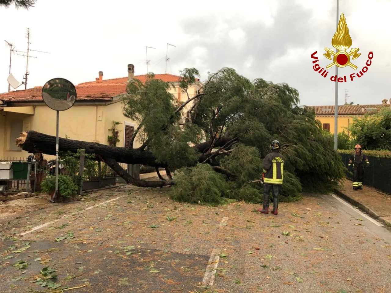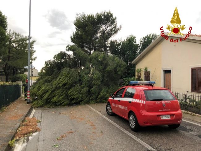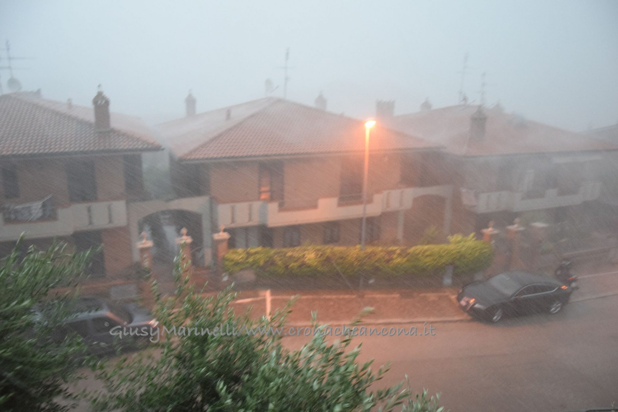 Allagamenti, alberi e rami caduti sulle strade della viabilità principale. Il temporale con forti raffiche di vento annunciato da giorni dalla Protezione civile si è manifestato oggi pomeriggio intorno alle 17,30-18 spazzando via la calura estiva. Il maltempo ha però creando disagi in tutta la provincia di Ancona. A Senigallia sono stati registrati allagamentied è stato necessaro chiudere i sottopassi che conducono al mare ma sono stati segnalati allagamenti anche alla Cesanella, alle Saline e nella zona ex Prg. Situazione critica anche a Jesi dove un grosso tronco è caduto sulla sede stradale di in via Campolungo. Ad Ancona il sotto passo di Vallemiano è allagato e impraticabile. Ad Osimo sono caduti molti alberi a Piazza Nuova, i giardini storici, uno in parte sul ‘Baretto’ e l’altro nel cortile della caserma dei carabinieri per fortuna senza travolgere persone. «Spero prima possibile di poter riaprire. Dai forza! (Me lo dico da solo) intanto sono vivo e vi posso assicurare che è moltissimo» ha commentato il titolare del Baretto Barincentro di Piazza Nuova.
