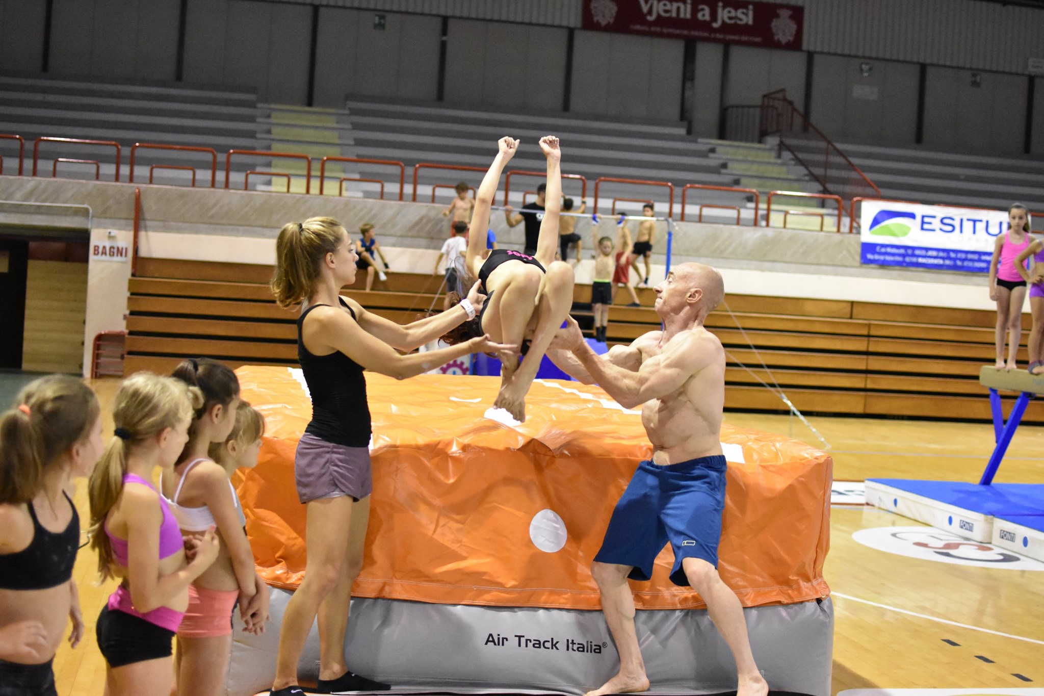 È in pieno svolgimento al Palatriccoli il camp di ginnastica artistica organizzato da Esitur e guidato dall’olimpionico Yury Chechi. È il quinto anno che il “signore degli anelli” sceglie la nostra città per questi incontri estivi con giovani di tutta Italia che vogliono perfezionare i vari esercizi. Anche stavolta vi è stata una ampia adesione all’iniziativa, con circa 200 atleti distribuiti in due settimane (questa e quella dal 22 al 27 luglio) che alloggeranno a Jesi.