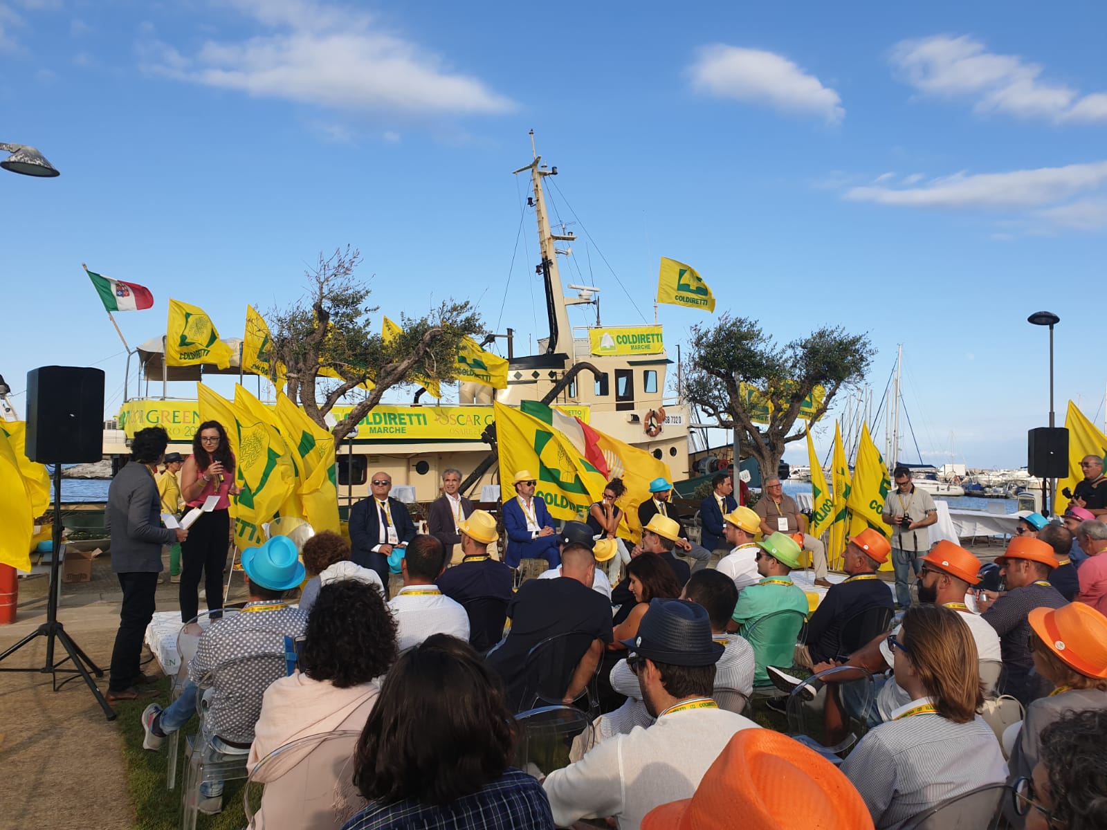 L’agriturismo che diventa custode del cibo e di un bene archeologico, gli alpaca per escursioni in montagna, nuove pratiche per abbattere gli sprechi e tutelare l’ambiente. Tra il dire e il fare, tra l’idea e la sua realizzazione, c’è la tenacia delle nuove leve dell’imprenditoria agricola a fare la differenza. Contadini del futuro sotto i riflettori, ieri pomeriggio, a San Benedetto del Tronto: 6 di loro hanno ricevuto l’Oscar Green 2019, il premio che da anni, siamo alla 13esima edizione, Coldiretti mette in palio per gli under 40 che hanno saputo coniugare tradizione e innovazione in campagna. Ben 43 partecipanti da tutta la regione suddivisi in 6 categorie. Premiazione in uno scenario da favola, sul molo Tiziano allestito con un tappeto d’erba vera, circondato da bandiere gialle, una barca ormeggiata piena di striscioni della stessa livrea a fare da fondale e un’altra in mare per un inchino di benvenuto. “Oscar Green è un momento di racconto e di indagine sull’impegno dei giovani imprenditori agricoli – ha evidenziato Maria Letizia Gardoni, presidente di Coldiretti Marche – Con questo premio dimostriamo con storie reali ciò che è stata la rivoluzione verde nel nostro Paese attraverso giovani che, arrivando anche da altri settori, hanno saputo reinterpretare e modernizzare l’agricoltura. Oscar Green racconta un’Italia differente, una generazione che non ha avuto timore, giovani che non si sono tirati indietro di fronte alla difficoltà e hanno investito, rispetto a tantissimi ragazzi che una volta terminato il percorso di studi non hanno sbocchi lavorativi e sono costretti ad andare all’estero o ad affrontare precariato e carenza di opportunità lavorative. L’agricoltura dà risposte concreti a problemi sociali: c’è un’Italia fondata sui giovani”.