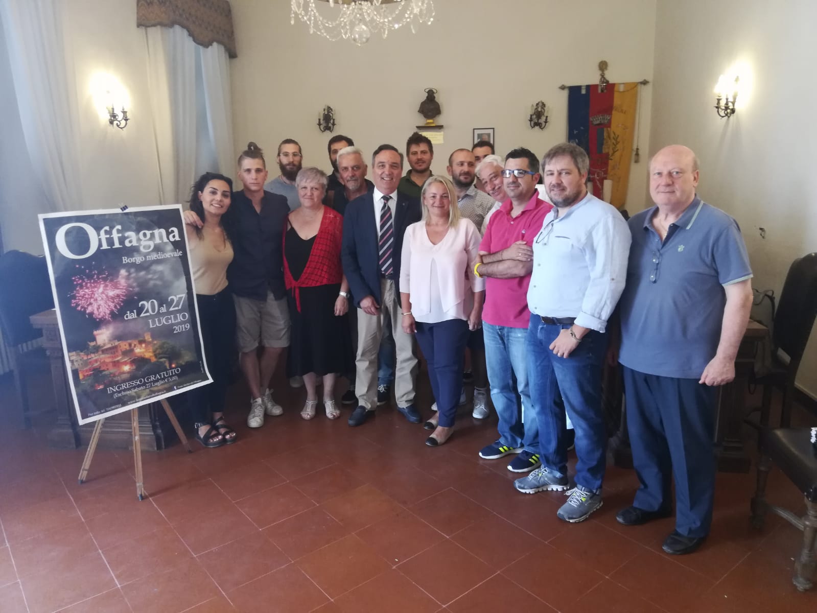 Si è svolta ieri mattina nella sala consiliare a Offagna la presentazione dell’edizione 2019 di Offagna Borgo Medioevale, la rievocazione storica che ha reso famoso il paese in tutta Italia. A fare gli onori di casa la vicesindaco Tiziana Socci, che ha portato i saluti del primo cittadino Ezio Capitani fuori in vacanza: «E’ andato a ritemprarsi ma tornerà per le feste medievali”, ha assicurato Socci, che poi ha ringraziato “tutti coloro che hanno lavorato nell’organizzazione delle feste, dal nuovo presidente del comitato ai Rioni passando per tutti i gruppi di animazione, questo evento ci inorgoglisce». Il Comitato Feste per Offagna che dal 2018 organizza la rievocazione storica ha un nuovo consiglio direttivo con 15 componenti presieduto da Stefano Ferroni. «Per me –ha detto- è un onore questo incarico ed è importante essere riusciti a trovare unità di intenti, questo è il primo grande risultato ottenuto dal consiglio direttivo che presiedo da pochi mesi, è stato molto impegnativo organizzare una manifestazione così articolata ma ricca di momenti culturali, storico rievocativi, teatrali e di animazione. Un grazie agli sponsor che ci hanno sostenuto».
