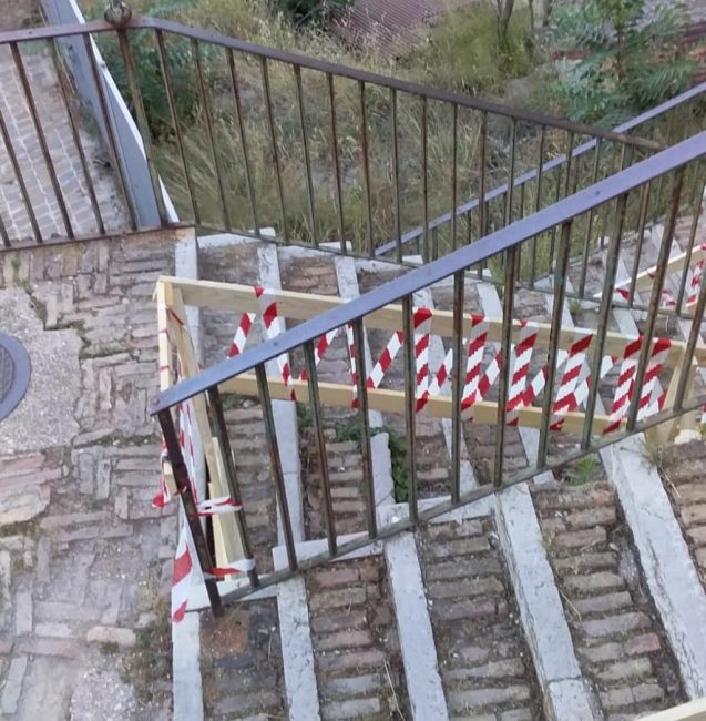 Una scalinati di via Rupi transennata