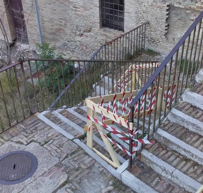 Una scalinati di via Rupi transennata