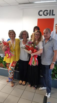 Da sinistra: Tiziana Mosca, segretaria uscente Flc Cgil scuola Ancona, Lilly Gargamelli, segretaria generale Flc Cgil Marche, Eleonora Fontana, segretaria neo eletta Flc Cgil Ancona e Marco Bastianelli, segretario Cgil Ancona
