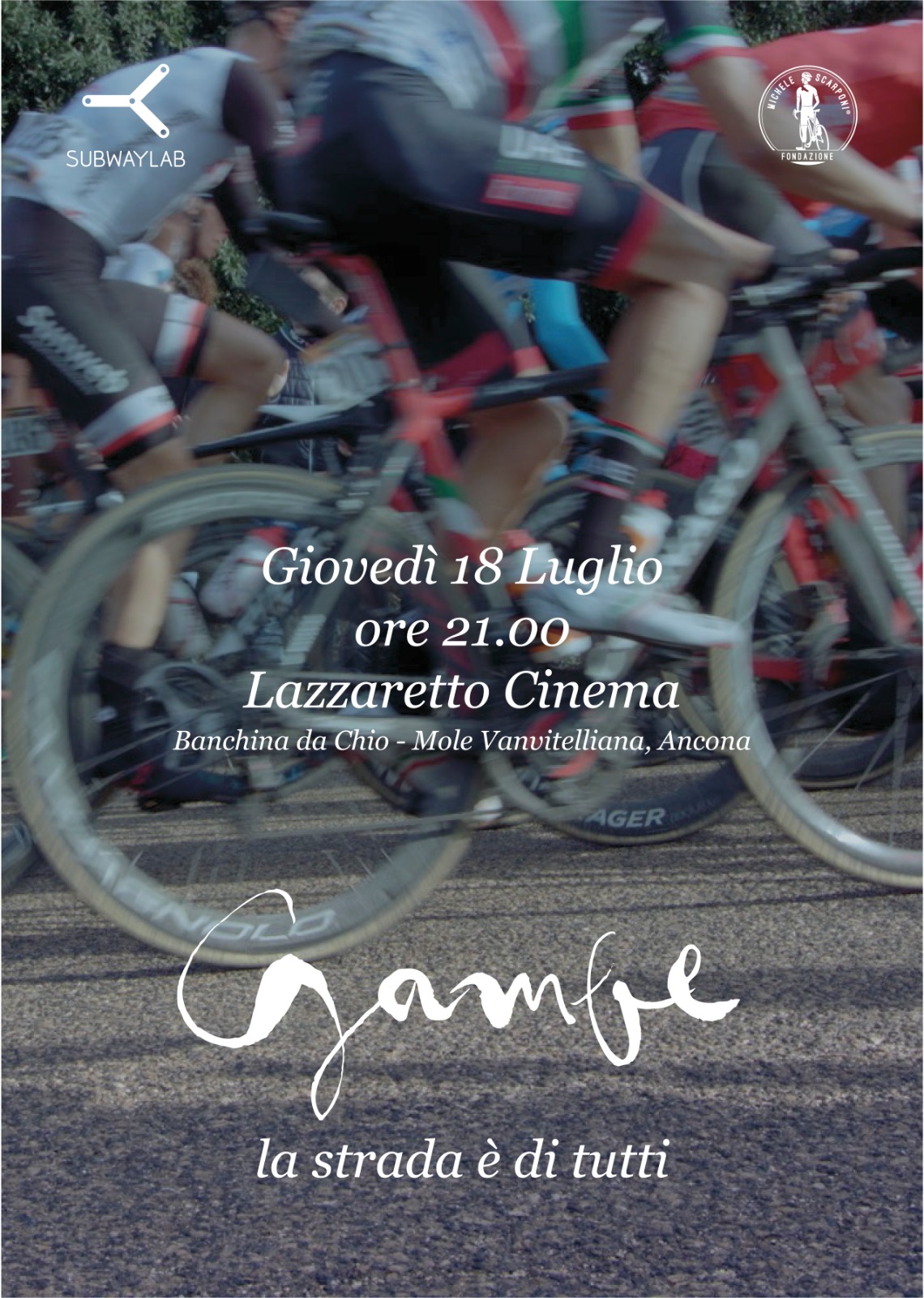 Si intitola ‘Gambe’ ed è nato da un’idea di Marco Scarponi, fratello di Michele. Scritto, diretto e prodotto da Subwaylab in collaborazione con la Fondazione Michele Scarponi, il film sarà veicolato nelle scuole italiane e diventerà la testimonianza cinematografica di tante storie di violenza stradale. «Il film vuole essere un contributo della Fondazione alla causa della sicurezza stradale – commenta Marco Scarponi – un documentario, che racconta il dramma, le vite spezzate, il dolore dei familiari, attraverso proposte concrete di riscatto e condivisione, per un futuro migliore. Dal sacrificio e dalla perdita di persone care, nasce dunque una proposta di mobilità a misura di persona in chiave positiva. La strada oggi è dominata dalle auto, e in strada si muore più di 3000 volte l’anno – prosegue Scarponi – Gambe racconta come può diventare anche dei disabili, dei bambini, dei pedoni e dei ciclisti. Perché la strada è di tutti».