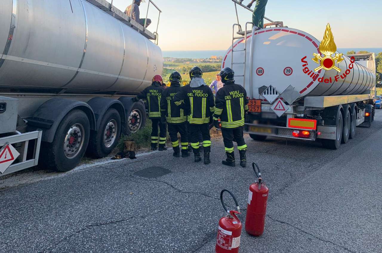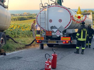 Oggi pomeriggio alle ore 17,15 circa, i vigili del fuoco sono intervenuti a Senigallia in via della Marina per soccorrere un autoarticolato in difficoltà. Il mezzo pesante che trasportava bitume liquido caldo, (circa 150 gradi), per motivi in via di accertamento, si è intraversato sulla carreggiata bloccandosi. I vigili del fuoco hanno prestato assistenza durante le fasi di travaso del carico su altro automezzo, successivamente utilizzando l’autogrù hanno recuperato l’automezzo, non si segnalano persone coinvolte la strada per la durata dell’intervento, circa tre ore è rimasta chiusa al traffico.