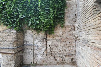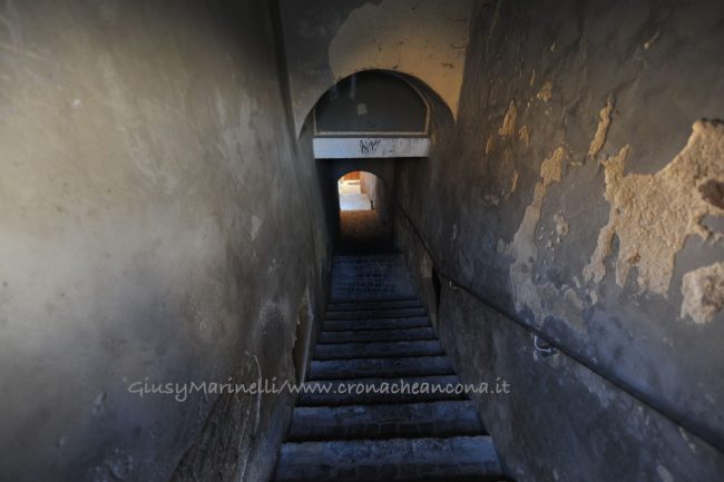 Ma oggi, iniziato da un po’ il terzo millennio, il vicolo – uno dei pochi scampati alla strage compiuta dai bombardamenti aerei della seconda guerra mondiale in tutto il centro storico di Ancona – rappresenta una sorta di civicamente blasfemo inno al degrado e ad una sorta di rimozione del “genius loci” dell’antica e stratificata memoria urbanistica del capoluogo dorico. Provare per credere, compiendo con cautela il tragitto iniziando dalla parte mare, là dove termina, in una specie di piazza, la porzione sopravvissuta di via Saffi. Il primo tratto pianeggiante – dove recentemente è stata bonificata una mega-discarica a seguito di un report-denuncia pubblicato su Cronache Ancona – è tutto un susseguirsi di crepe, buche e avallamenti nell’asfalto, luridume, calcinacci. Siamo sul fianco sinistro – per chi arriva da lungomare Vanvitelli – dell’omonimo residence. Ed ecco che al termine di quel fianco, il vero accesso dell’originario vicolo è quasi invisibile, in quanto le fronde di un fico ultra centenario giungono quasi fino al suolo. Mentre le radici si sono così profondamente inoltrate nel terreno poco sopra, da aver prodotto con la loro spinta vitale una lunga frattura nel muretto di contenimento, che potrebbe crollare, chissà, da un momento all’altro.
