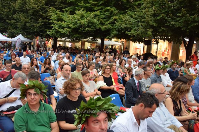 E con il rettore ha scherzato sul ribattezzare piazza Roma come piazza dell’univeristà: «questo non si può fare perché il nome di piazza Roma è un fatto storico, ma si può ragionare sul dare veste simbolica a questo rapporto tra Politecnica e capoluogo». Dopo i saluti istituzionali, è stata la volta della cerimonia per la consegna di una pergamena per i laureati d’argento che hanno conseguito il titolo nel 1994 e di un talk show – moderato da Roberto Tallei, corrispondente da Bruxelles Sky TG24 (laureato Univpm) – che ha visto confrontarsi cinque ex che hanno avuto un percorso post laurea particolare: Maria Letizia Gardoni, imprenditrice agricola e presidente Coldiretti Marche (Agraria), Francesca Petrini, imprenditrice olearia, testimonial Regione Marche Expo 2015 (Economia), Monica Giannini, Project Officer presso la Commissione Europea settori Green Vehicles e Batterie (Ingegneria), Rodolfo Montironi, professore ordinario di Anatomia Patologica Facoltà di Medicina, primo scienziato di patologia in Europa, e primo assunto Università Ancona (Medicina) e Gian Marco Luna, direttore CNR-IRBIM (Scienze). L’esibizione del rapper alla Mondadori ha avuto come imprevisto un black out che ha colpito quasi tutto il centro storico. Nonostante il buio, Frankie ha continuato lo show.