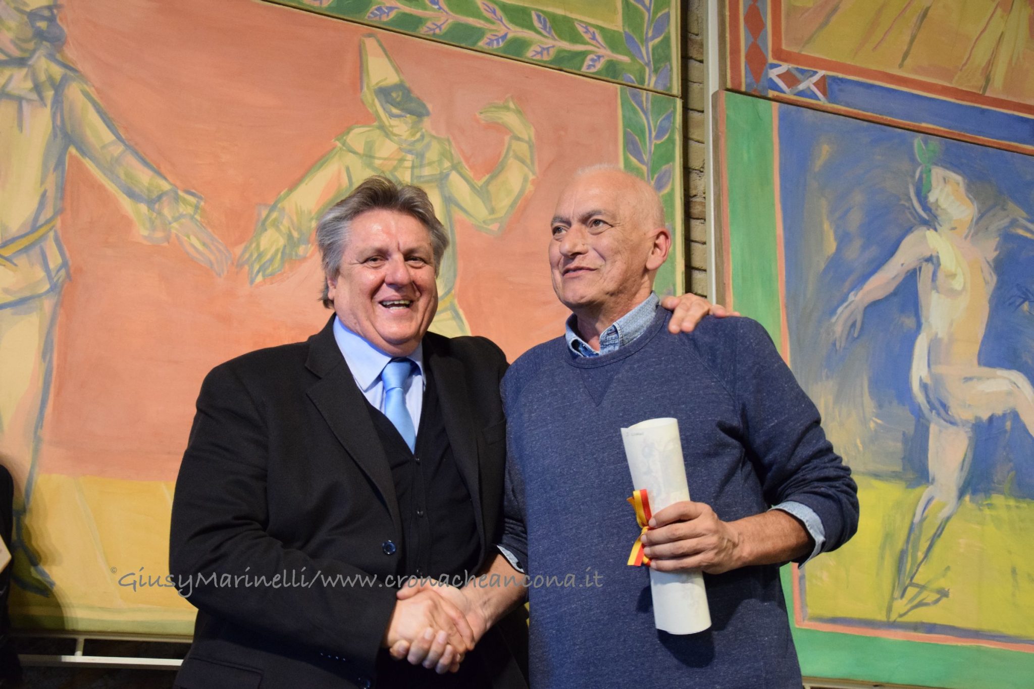 Il professor Lucarini riceve il premio durante la cerimonia dei Ciriachini a maggio 2019 (foto Giusy Marinelli)