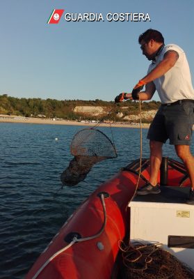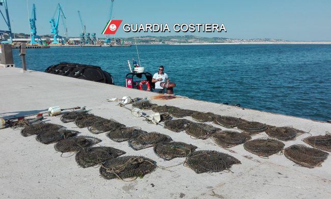 Nell’ambito delle attività di controllo finalizzate al rispetto della normativa in materia di pesca e della sicurezza della navigazione, la Guardia Costiera di Ancona ha recuperato, nello specchio acqueo antistante l’imboccatura sud del porto di Numana, a circa 300 metri dalla riva, 25 nasse (tipo bertovelli) posizionate in zona vietata e prive di qualsivoglia segnalamento identificativo. Sul posto è intervenuta l’unità navale della Guardia Costiera GC A15, che ha provveduto al sequestro amministrativo a carico di ignoti della attrezzatura da pesca, per scongiurare il pericolo per la navigazione e, data la vicinanza con la costa, per tutelare la sicurezza dei bagnanti, poi sbarcata nel porto di Ancona. Il prodotto contenuto nelle nasse (pesci mormore) è stato rilasciato in mare poiché ancora vivo.