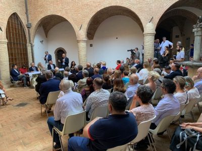 La Regione Marche, il Ministero per i Beni e le Attività culturali, il Comune di Fabriano e Anci Marche presentano la mostra ‘La luce e i silenzi: Orazio Gentileschi e la pittura caravaggesca nelle Marche del Seicento’ a cura di Anna Maria Ambrosini Massari e Alessandro Delpriori, che coinvolgerà non solo la Pinacoteca Civica Bruno Molajoli di Fabriano, ma anche due evidenze storico-artistiche molto importanti della città, il Duomo e la Chiesa di San Benedetto. Circa 60 opere in mostra, tra le quali 10 di Orazio Gentileschi. L’allestimento, uno scrigno di bellezza, è stato inaugurato oggi alla presenza della senatrice Liliana Segre ma sarà visitabile da domani 2 Agosto fino all’8 Dicembre prossimo. Oggi, nel corso della conferenza stampa nel bel chiostro della Pinacoteca Molajoli, l’assessore regionale al Turismo-Cultura, Moreno Pieroni ha sottolineato la valenza di questo progetto espositivo: «Non poteva esserci migliore conclusione per un ciclo di eventi come “Mostrare le Marche “ – pensato per rilanciare i territori colpiti dal sisma e che si è via via riempito di bellissime iniziative nazionali e sovranazionali- che una mostra così densa di bellezza e di Arte e forse la più bella di questa fervidissima stagione culturale marchigiana 2019. Un segno importante per Fabriano, città propositiva su cui focalizzare l’attenzione come simbolo dell’entroterra, un segno per le Marche da cui parte oggi un messaggio forte di rilancio all’insegna della Cultura. Per questo la Regione ha creduto in questo progetto espositivo investendo 93 mila euro per l’organizzazione ed altri 50 mila euro di fondi europei per i territori del cratere, destinati alla promozione della mostra a livello nazionale. Ci abbiamo creduto perché da sempre sosteniamo che la Cultura è economia del territorio, crea indotto e attrae un turismo di qualità. E diventa il miglior strumento promozionale per una destagionalizzazione dell’offerta. Veniamo da mostre ed eventi molto significativi come Lorenzo Lotto a Macerata , passando per i 200 dell’Infinito e ci dirigiamo verso grandi iniziative come i 500 anni della morte di Raffaello nel 2020. Ci sono tutti gli elementi per poter affermare che le Marche stanno offrendo una proposta culturale di rilievo internazionale».