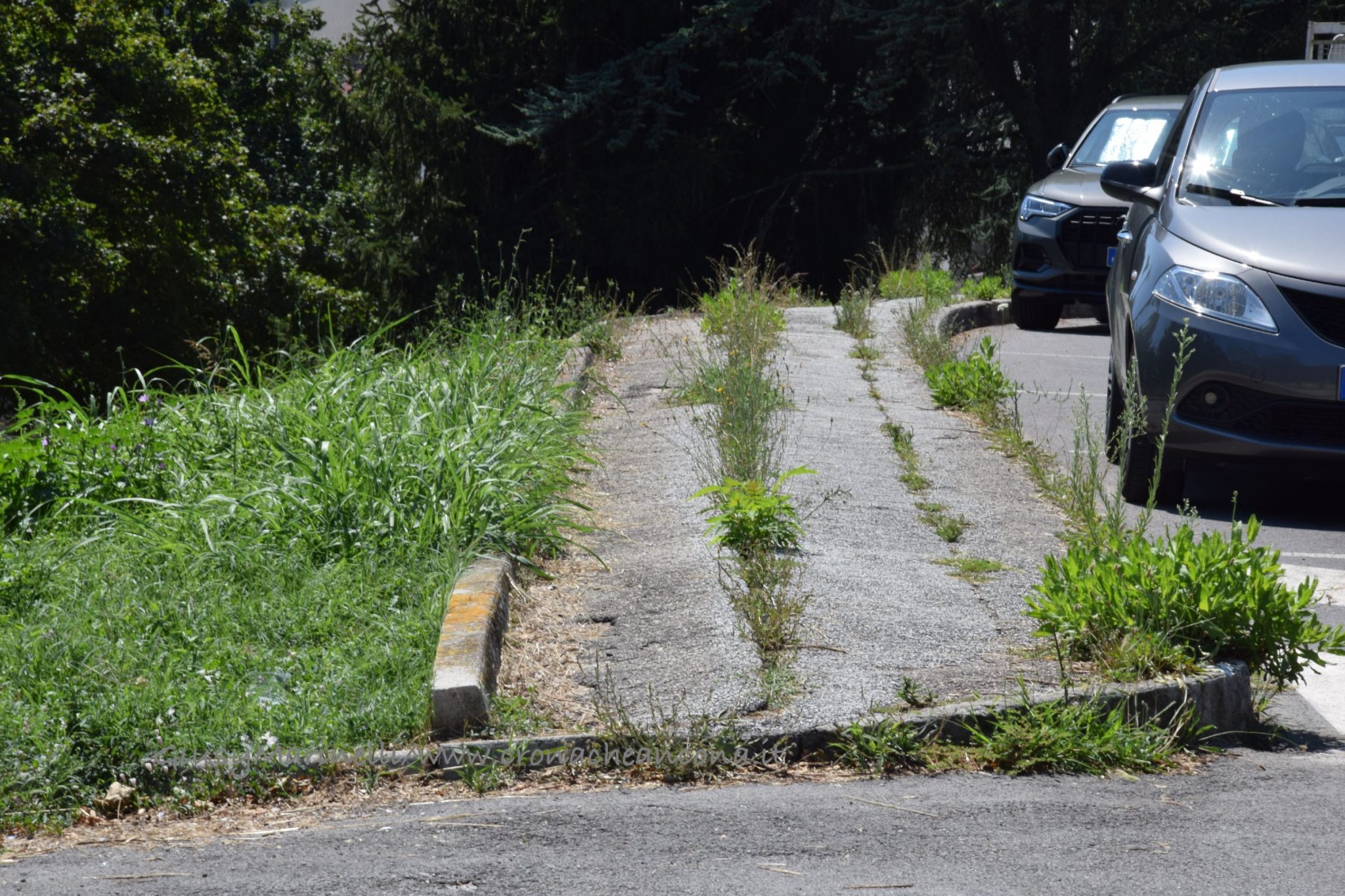 Il sole d’estate picchia forte sul degrado, il silenzio rotto solo da qualche moto che sfreccia e dal vociare dei giovanissimi frequentatori dei già citati impianti sportivi, uno dei quali è un costante cantiere. All’ingresso della piscina un cumulo di sedie accatastate chissà da quanto accanto ai raccoglitori della raccolta rifiuti differenziata. Poco più su, in una diramazione di via Ruggeri, una Fiat Punto targata Napoli parcheggiata “in bilico”, le manca la ruota posteriore destra. Ai lati delle strade, ogni tanto, tracce di nuove piantumazioni, ma anche i resti di sfalci ammassati. Ma questi interventi istituzionali finalizzati a restituire decoro al rione risultano troppo diluiti nel tempo. Pochi uomini e mezzi. E come se si volesse risistemare qualche ettaro di macchia che sa di tropicale armati solo di un falcetto e un coltellino. Povero Q2, quartiere nuovo, ma afflitto da vecchi e cronici problemi. Povero Quartiere 2, cittadina periferica di serie B, un po’ fantasma a margine della città, alla quale l’Amministrazione comunale non s’è degnata di dare neanche un nome, cavandosela con un acronimo, due lettere, appunto, Q2.
