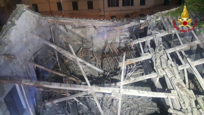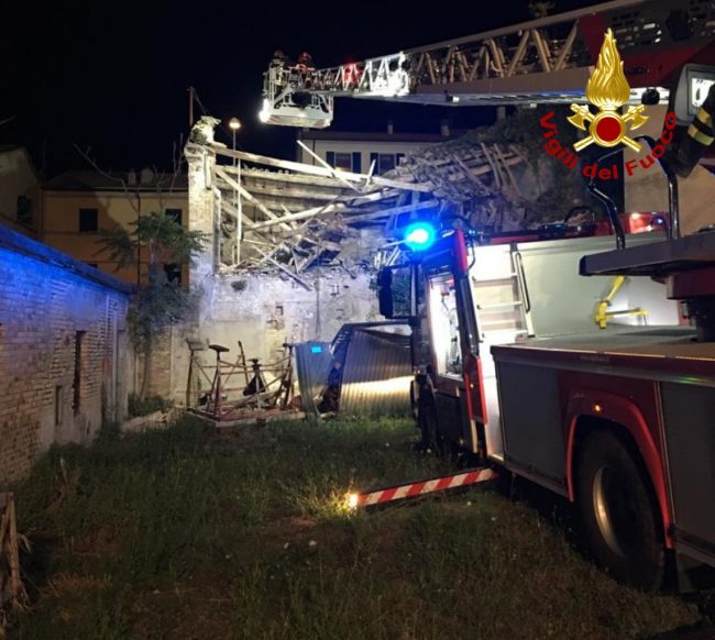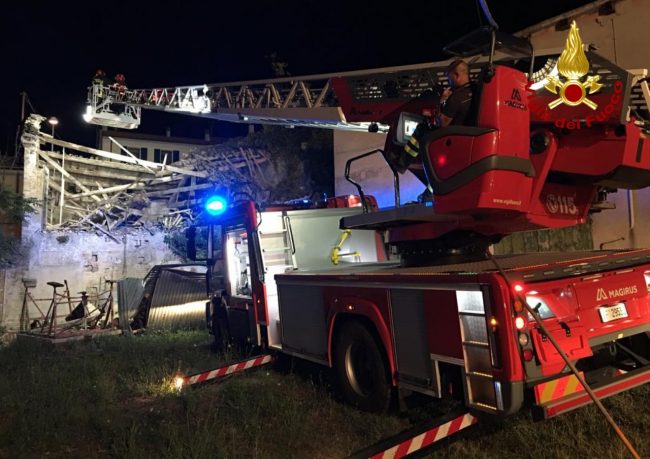 Crolla una delle vecchie palazzine nell’area dell’ex Crass di Ancona. Ieri sera, 6 Agosto, intorno alle ore 21,15, i vigili del fuoco sono intervenuti ad Ancona in via Maggini dopo il fragoroso cedimento del fabbricato che era già fatiscente e per questo non utilizzato come ambulatorio medico. Per cause in fase accertamento è crollato con fragore il tetto di un vecchio stabile a un piano all’interno della proprietà del Crass e anche una facciata della palazzina. I vigili del fuoco utilizzando l’autoscala hanno verificato che non vi erano persone coinvolte, hanno messo in sicurezza il sito e in via precauzionale è stata chiusa al traffico via Maggini tra l’incrocio con via Palombare e quello con via Barilatti, è rimastacchiusa per un muro pericolante lato strada, fino alla messa in sicurezza dello stesso. Il traffico è stato deviato e sono state rimosse le auto in sosta nella zona. Anche l’assessore Stefano Foresi ieri sera ha svolto un sopralluogo nella zona.