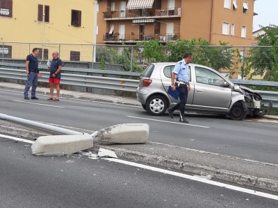 Uno spettacolare incidente stradale si è verificato oggi pomeriggio verso le 15,45 lungo viale del Lavoro. Una sola vettura coinvolta, che ha fatto tutto da sola, perdendo il controllo e andando letteralmente a saltare nella carreggiata opposta, per poi schiantarsi contro un palo e terminare la sua corsa contro la ringhiera del ponte della Granita. Si tratta di una Toyota Yaris condotta da una donna di 48 anni di Montemarciano (M.P. le sue iniziali), che come una scheggia impazzita mentre transitava in direzione Jesi centro, all’improvviso ha perso il controllo. Un miracolo che non siano rimasti coinvolti altri mezzi. La donna, al volante della piccola utilitaria, è rimasta incastrata. Immediata la richiesta di soccorso al 118 da parte di alcuni testimoni.