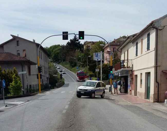 L’attraversamento semaforizzato di via D’Ancona, all’Aspio di Osimo (foto d’archivio) con, a destra, la tabaccheria Mazzarini