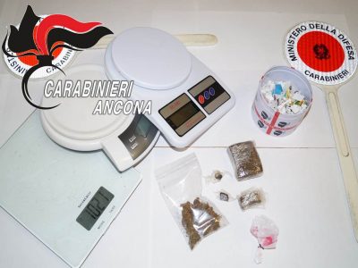 Ieri sera, un uomo è stato arrestato dai Carabinieri della Compagnia di Senigallia con l’accusa di detenzione ai fini di spaccio di sostanza stupefacente. Si tratta di senigalliese di 45 anni, noto alle forze dell’ordine. Dal controllo dei militari, che da qualche giorno monitoravano i suoi movimenti, è emerso che l’arrestato a casa deteneva 60 grammi di hashish, 9 grammi di marijuana e una dose di cocaina. I militari del Nucleo Operativo, in abiti borghesi, si sono appostati sotto casa dell’uomo in via Capanna, a Senigallia. Intorno alle 19,30 il 45enne è rientrato in casa con il cane al guinzaglio. L’uomo è stato immediatamente bloccato e controllato. Addosso, i carabinieri non gli hanno trovato nulla, allora hanno perquisito la sua abitazione al secondo piano. Il 45enne ha consegnato spontaneamente due vasetti di vetro prelevati da una mensola nel ripostiglio. Uno conteneva un involucro di cellophane che avvolgeva un mezzo panetto di sostanza resinosa di colore marrone e due piccoli pezzetti della medesima specie. Nell’altro vasetto era presente un piccolo involucro confezionato con cellophane termosaldato con all’interno polvere bianca, poi risultata essere cocaina. Nel corso della perquisizione sono stati rinvenuti piccoli quantitativi di hashish e marijuana, e tre bilancini elettronici di precisione lasciati sopra un mobile in soggiorno, mentre in un altro mobile, collocato sul balcone, è stata recuperata una bustina con infiorescenze di marijuana. Dopo le formalità di rito, su disposizione del pm è stato sottoposto agli arresti domiciliari. La sostanza stupefacente rinvenuta ed i bilancini elettronici presenti in casa sono stati sottoposti a sequestro insieme al telefonino cellulare dell’arrestato per verificare attraverso l’individuazione degli acquirenti il giro d’affari dell’attività illecita. Questa mattina, il tribunale ha convalidato l’arresto ed in attesa del processo fissato il prossimo 10 settembre, ha applicato la misura cautelare dell’obbligo di presentazione in caserma.