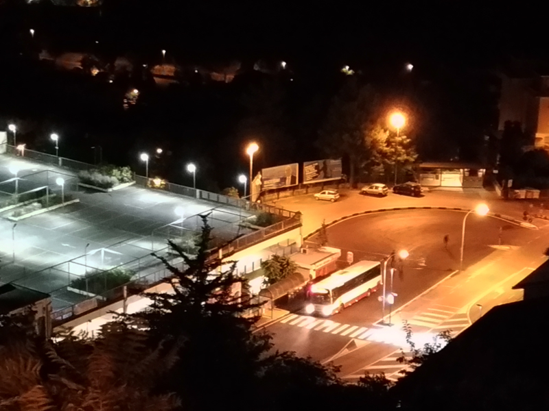 Il maxi parcheggio di via Colombo illuminato di notte