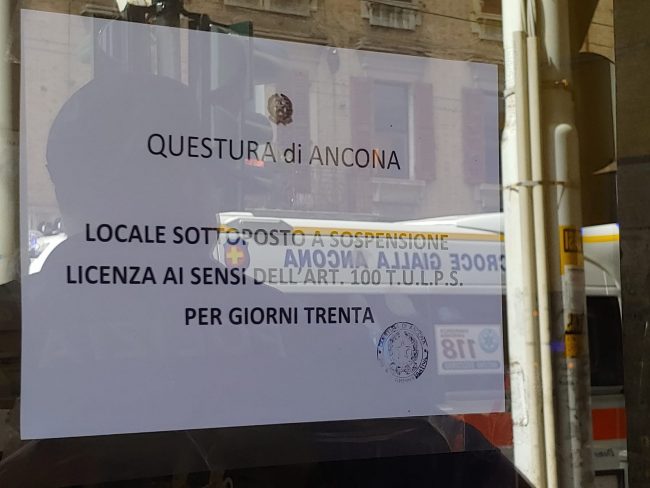 ANCONA - Dopo lo stop decretato a fine giugno per dieci giorni, questa mattina la polizia è tornata a bussare alle porte del locale di Piazza Ugo Bassi. Dovrà stare chiuso un mese
