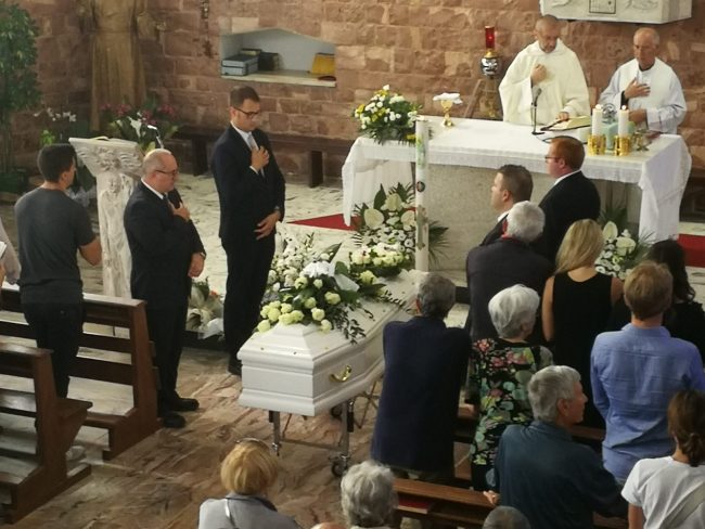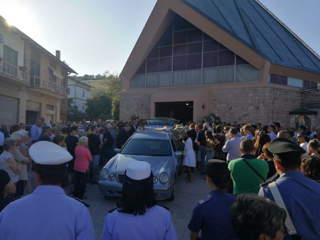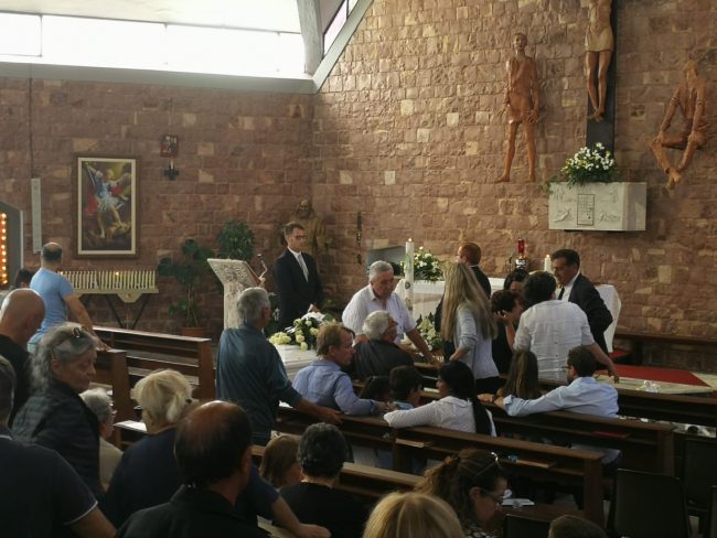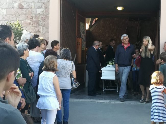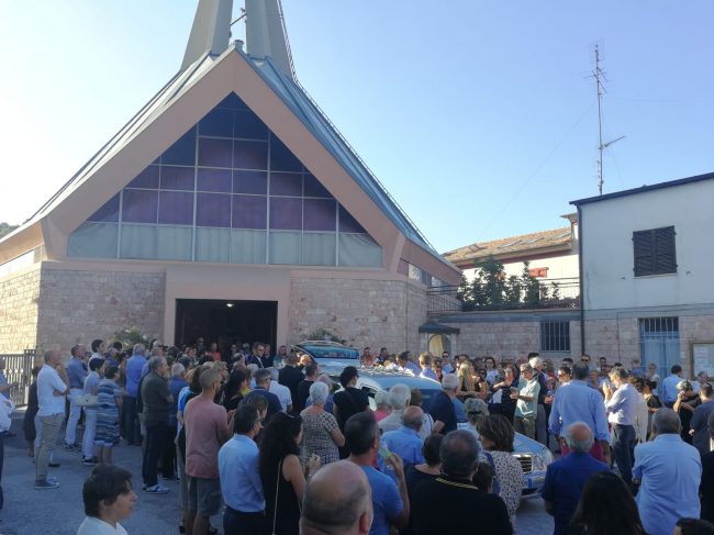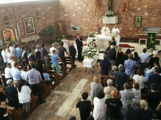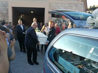 E’ Ferragosto ma sembra uno dei giorni più freddi dell’anno. Non ci sono feste, non c’è gioia ma solo dolore. Un dolore che nel corso del funerale, che si è svolto alle 17 di oggi nella chiesa di San Michele Arcangelo di Passo San Ginesio, è stato sottolineato da un piccolo violinista, Ares, 13 anni, ginesino, che ha eseguito alcuni brani della Partita 1 di Bach. Nessuna parola al funerale per ricordare Arturo, non serviva. Le uniche parole nel corso della funzione le ha spese il padre domenicano Antonio Olmi, amico della famiglia del bambino, che ha celebrato la messa insieme al parroco Mario Ricciatelli, «Arturo vive, in una nuova dimensione, molto più perfetta» ha detto il religioso. Ad ascoltare quelle parole circa 250 persone, dai bambini agli anziani, dai genitori di Arturo, Mariasole Piatti e Carlo Pagni, alle sorelline del bambino, Irene, 12 anni, e Nora 7, al sindaco di San Ginesio Giuliano Ciabocco, al vice sindaco di Sant’Angelo in Pontano, Rolando Antognozzi. Al centro il feretro bianco e sopra i fiori di mamma e papà e la coroncina di rose bianche a forma di cuore delle sorelline.