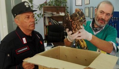 Nei giorni scorsi i carabinieri forestali della Stazione del Conero sono intervenuti per soccorrere un rapace ferito ritrovato nei pressi del Conero Golf Club di Sirolo, mentre si stava abbeverando in una pozza d’acqua. Giunti sul posto i militari sono rimasti sorpresi nell’appurare che si trattava di un giovane esemplare di astore, specie rarissima che frequenta boschi maturi e di elevato valore naturalistico e nidifica su alberi di grandi dimensioni. L’animale impaurito ed aggressivo è stato catturato con difficoltà dai militari che, appurata la grave lesione dell’ala, lo hanno recuperato prontamente e consegnato, grazie anche al supporto dei colleghi della Stazione di Pesaro, al Dr. Famà medico veterinario direttore della clinica convenzionata con il CRAS di Pesaro. Nella giornata di ieri, l’animale è stato trasferito nella clinica veterinaria Monte Adone di Bologna specializzata per gli interventi di recupero delle fratture dei rapaci, che tenterà di recuperare l’animale al fine di rilasciarlo in natura nel Parco del Conero, dove con ogni probabilità è nato. Considerato che per questa specie non erano state mai segnalate nidificazioni nell’area del Parco del Conero, e che l’esemplare è un giovane uscito dal nido da poche settimane, questo evento è da considerarsi importantissimo per l’area protetta, e sta a dimostrare come le superfici boscate del parco stiano acquisendo un ottimo grado di naturalità, tale da ospitare anche specie più esigenti che hanno necessità di ecosistemi forestali naturali.