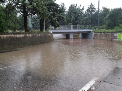 Scantinati, garage e fondaci sono allagati in tutti i quartieri della città. Le strade, della periferia ma anche del centro storico, si sono trasformate in fiumi. La scalinata dell’Annunziata, scomparsa sotto l’acqua, sembra un torrente in piena. Tutti i sottopassi, soprattutto quelli più a rischio, sono stati tutti chiusi per evitare incidenti, come quello del “Globo” che unisce via Piceno Aprutina e via del Commercio. L’acqua, lì, è arrivata quasi al livello della sovrastante ferrovia.