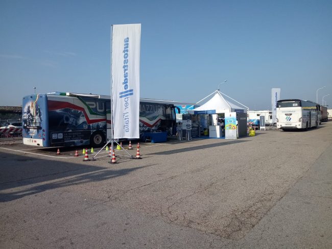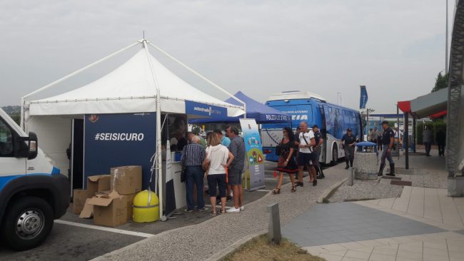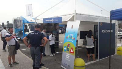 Continua la campagna di educazione stradale “On Site” che sta riscuotendo successo tra gli utenti della strada. Nella giornata di ieri, domenica 25 agosto, è stato nuovamente allestito il dispositivo costituito dal pullman azzurro della Polizia di Stato, dal camper della Croce Rossa Italiana, dallo stand dimostrativo-educativo di Autostrade per l’Italia. Nell’area di servizio di “Conero Est” era presente la Polizia Stradale, personale di Autostrade e sanitari pronti a fornire la necessaria assistenza. Gli automobilisti hanno richiesto informazioni sul traffico ma anche formulato domande e curiosità sulla guida e sulle norme del codice della strada. Dalla mattinata di domenica fino a pomeriggio inoltrato i contatti sono stati 672, di cui 515 adulti e 157 bambini, che si sono sottoposti con entusiasmo ad un simulazione di un percorso di guida effettuato in stato di alterazione dovuto all’assunzione di alcool. In 442 hanno partecipato ad un quiz su quesiti riguardanti la circolazione stradale e le corrette condotte di guida, redatti anche in altre lingue europee per gli utenti stranieri. L’80% del pubblico ha appreso dell’iniziativa direttamente in area di servizio ed è stato coinvolto dal personale presente, il restante lo ha appreso dai canali televisivi e radiofonici. La campagna è infatti arricchita anche da messaggi mediatici e dagli sketch ironici che hanno come protagonista e testimonial l’attore comico Dario Vergassola e che utilizzano il linguaggio dell’umorismo per comunicare le tematiche relative alla sicurezza stradale. Sono state distribuite 406 borracce termiche, 416 kit per l’automisurazione del tasso alcolemico e 36 libricini e scatole di colori per i più piccoli. In 24 hanno richiesto un esame da parte dei sanitari che hanno proceduto alla rilevazione dei parametri vitali ed ai primi controlli pressori e glicemici, non riscontrando casi di criticità ma dando suggerimenti soprattutto alle persone anziane affaticate dal lungo rientro, soprattutto dalle località del sud Italia verso le regioni del Settentrione, e dalle alte temperature. L’allestimento del dispositivo all’area di servizio proseguirà per i primi due fine settimana di settembre, ancora contrassegnati da bollino rosso per i rientri ed i transiti autostradali.