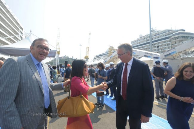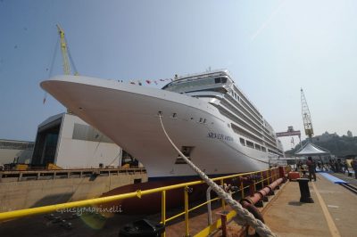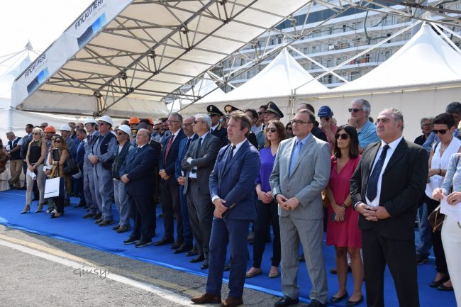 Si è svolta oggi al cantiere navale la cerimonia di varo della ‘Silver Moon’, la seconda di tre navi da crociera ultra-lusso che Fincantieri realizzerà per la società armatrice Silversea e che entrerà a far parte della flotta dell’armatore nel 2020. Alla cerimonia erano presenti, tra gli altri, Manfredi Lefebvre d’Ovidio, Chairman di Silversea, e per Fincantieri Giovanni Stecconi, direttore del cantiere. Madrina del varo è stata Roberta Bonisiol, dipendente del gruppo cantieristico. ‘Silver Moon’ sarà gemella dell’ammiraglia ‘Silver Muse’, che ha preso il mare nel 2017, e di ‘Silver Dawn’, la cui consegna è prevista nel 2021, e avrà una lunghezza di 212 metri, 40.700 tonnellate di stazza lorda e la capacità di ospitare a bordo 596 passeggeri, conservando l’intimità della piccola unità e le spaziose cabine – tutte suite – che sono la cifra distintiva di Silversea. Questa sarà la nona unità della flotta di Silversea e una volta operativa alzerà significativamente gli standard nel settore ultra-lusso con numerose migliorie dell’esperienza a bordo, per incontrare le esigenze senza compromessi in termini di comfort, servizi e qualità dei viaggiatori più competenti al mondo. Tra le notazioni della nave, come per la gemella, spiccherà la “Green Star 3 Design”, assegnata alle unità provviste, sin dal loro progetto, di dotazioni che prevengono l’inquinamento dell’aria e del mare. Inoltre, di particolare rilievo saranno le notazioni “COMF-NOISE A PAX” e “COMF-NOISE B CREW”, assegnate sulla base dei livelli di rumore misurati nei vari locali della nave. Il governatore Ceriscioli: «Ogni volta che questa nave viaggerà nel mondo porterà con sé la forza e la bellezza della capacità produttiva di questa regione come un naturale ambasciatore Una bellissima e grande nave frutto del lavoro di migliaia di dipendenti della Fincantieri – ha aggiunto Ceriscioli – maestranze che hanno dimostrato di avere grandi capacità nella storia della nostra regione che è tra le più manifatture d’Italia e che, attraverso queste opere, può vedere garantito il lavoro per migliaia di persone e mostrare la capacità produttiva e qualitativa del lavoro dei marchigiani. Quando girerà per il mondo questa nave sarà un naturale ambasciatore della forza, della bellezza, della capacità produttiva di questo territorio. Una bella soddisfazione essere qui accanto a chi ha lavorato su questa nave, certi che il lavoro continuerà perché le commesse non mancano a dimostrazione che la qualità continua a pagare».