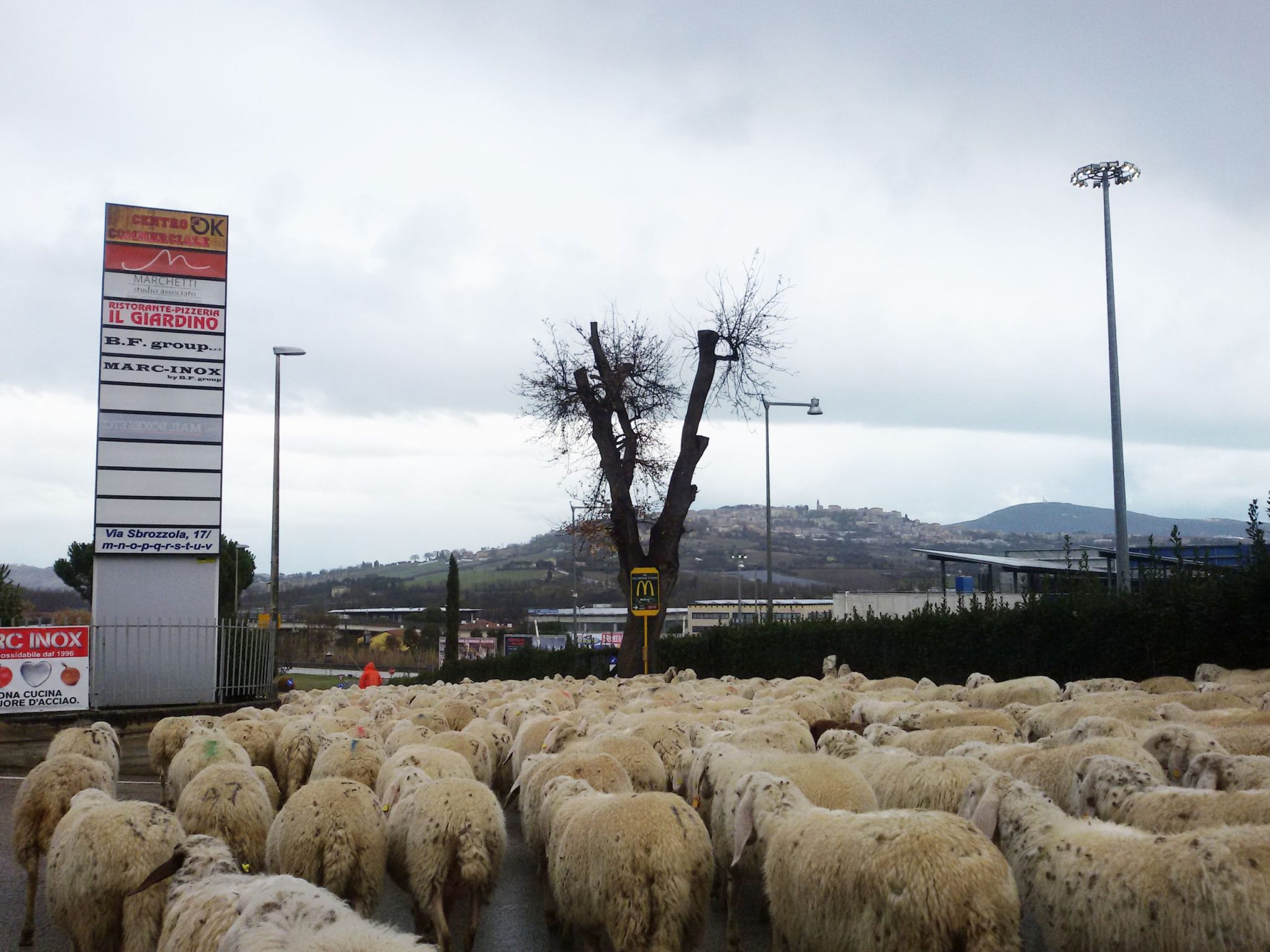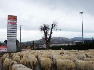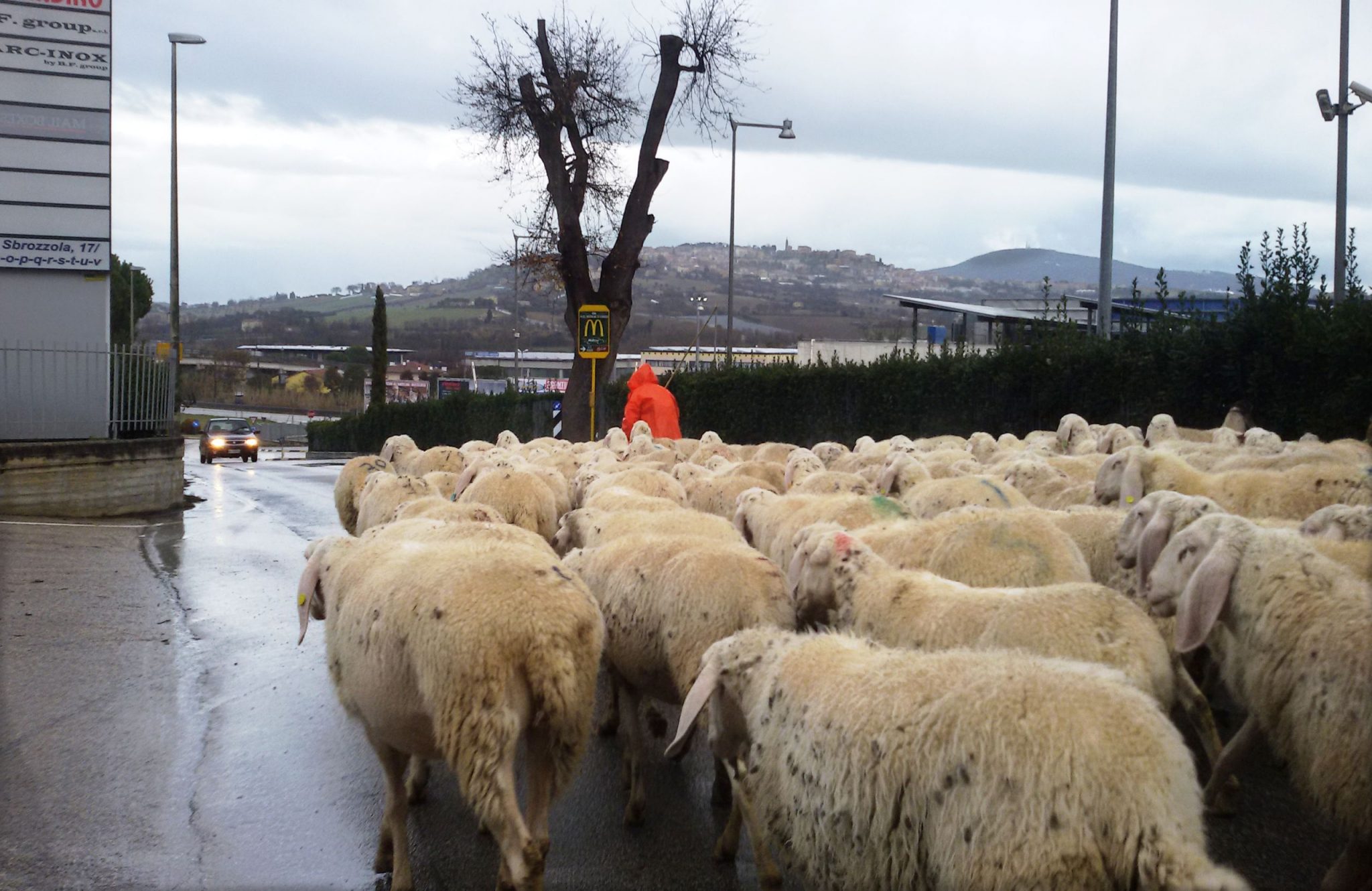 Un gregge di pecore  in via Sbrozzola, tra l’Aspio e Osimo Stazione