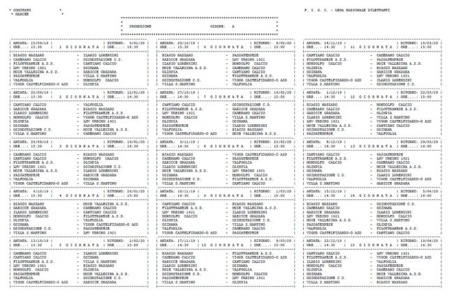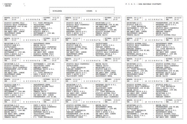 Sono ufficiali i calendari di Eccellenza, Promozione, Prima e Seconda categoria, campionati che prenderanno il via nel weekend del 14 e 15 settembre. L’Anconitana inizierà con la trasferta sul campo dell’Urbania. Saltano all’occhio i numerosi “derby” con le altre squadre della provincia e la sfida con il Valdichienti Ponte. La quarta giornata è contraddistinta dal doppio derby provinciale con Vigor Senigallia contro Marina e Fabriano Cerreto contro Anconitana (andata si giocherà il 6 ottobre mentre il ritorno il 26 gennaio). Altra tappa fondamentale del cammino biancorosso è la settima giornata, dove i ragazzi di Ciampelli affronteranno il Castelfidardo in una partita che promette spettacolo il 20 ottobre, con il ritorno fissato per il 9 febbraio. Continuando a scorrere il calendario la giornata successiva, l’ottava, l’Anconitana farà visita alla Vigor Senigallia, sfida già vista lo scorso anno in Promozione e che rischia nuovamente di essere fondamentale; l’andata sarà il 3 novembre ed il ritorno il 23 febbraio. La decima giornata offre invece il big match tra Valdichienti Ponte ed Anconitana, due squadre che si sono attrezzate per raggiungere la promozione diretta, il 17 novembre, con il ritorno l’8 marzo. L’ultima partita dal sapore di derby, per i biancorossi, è la quindicesima giornata quando affronteranno il Marina il 22 dicembre, con il ritorno fissato per l’11 aprile. Sfide affascinanti quelle che vedranno contrapposte le altre squadra della provincia, ovvero Castelfidardo, F.C. Vigor Senigallia, Fabriano Cerreto e Marina. Di particolare interesse restano sempre i derby che inizieranno, come detto sopra, alla quarta giornata con Vigor Senigallia contro Marina. Successivamente in ordine: Marina contro Fabriano Cerreto alla nona giornata, Vigor Senigallia-Castelfidardo all’undicesima, Fabriano Cerreto contro Vigor Senigallia alla dodicesima e Castelfidardo-Fabriano Cerreto alla tredicesima.
