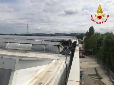 I vigili del fuoco di Osimo sono intervenuti alle ore 14 circa a Passatempo per l’incendio di un impianto fotovoltaico posto sul tetto di un capannone industriale di un’azienda che produce articoli sacri in via Lenco. La squadra dei vigili del fuoco giunta sul posto ha proseguito l’opera di spegnimento, iniziata dagli operai della ditta che rientrando dalla pausa pranzo hanno notato del fumo fuoriuscire dalla copertura e dai finestroni dell’immobile, Con prontezza hanno attivato l’impianto antincendio gettando acqua sul tetto e all’interno del capannone, limitando così’ la propagazione dell’incendio in atteda dell’arrivo dei vigili del fuoco che poi hanno impegnato tutto il pomeriggio a domare le fiamme tagliando per 50 mq la lamiera della copertura coibentata, smobilitando i pannelli fotovoltaici e mettendo in sicurezza l’impianto. In supporto è arrivata sul posto anche l’autoscala inviata dalla sede Centrale di Ancona. L’incendio sarabbe scaturito da cause accidentali, un probabile corto circuito elettrico all’impianto dei pannelli solari, agevolato dalla pioggia di stamattina. Il calore interno alla struttura generato dal fuoco ha danneggiato anche le finestre in plexiglass del capannone.