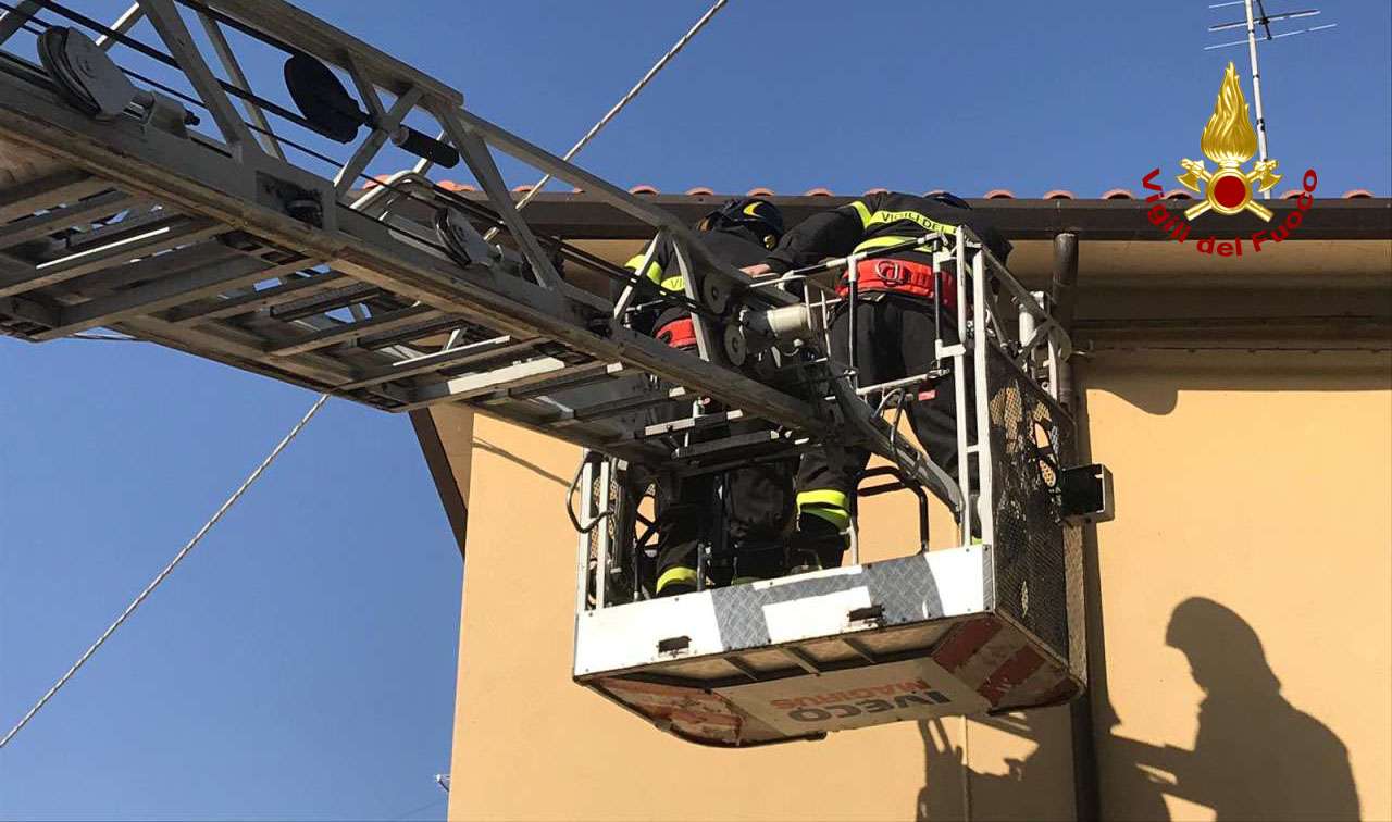 Croce in ferro del torrione civico pericolante sul tetto del palazzo comunale a Cerreto D’Esi: i vigili del fuoco transennano l’area sottostante. Le operazioni di messa in sicurezza sono scattate oggi pomeriggio ma non è stato possibile raggiungere la copertura del municipio perché l’autoscala dei vigili del fuoco partita da Ancona riusciva ad arrivare solo ad un’altezza di 30 metri mentre l’elemento pericolante del torrione si trovava ad un livello più alto. A tutela della pubblica incolumità i pompieri ed il personale tecnico del Comune hanno così deciso di transennare l’area sottostante per evitare che la croce, comunque ancorata alla strutture del solaio dell’edificio dopo gli ultimi episodi di maltempo, possa cedere e precipitare a terra sulla strada provocando danni a cose o persone. Nei prossimi giorni la squadra dei vigili del fuoco di Fabriano tornerà sul posto per un nuovo sopralluogo.