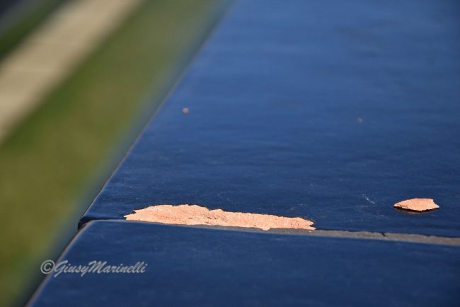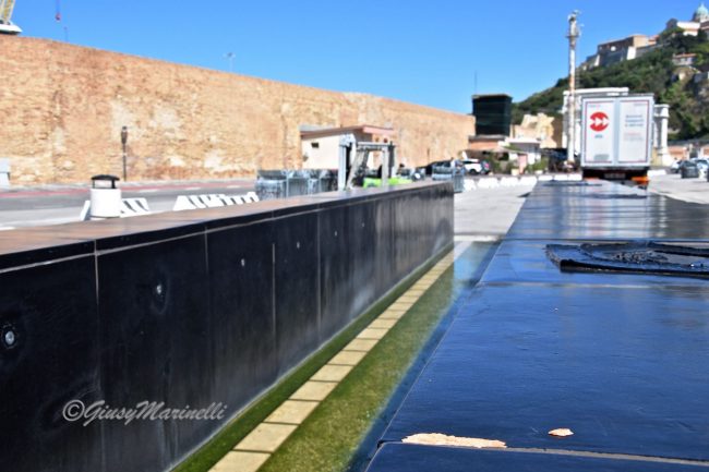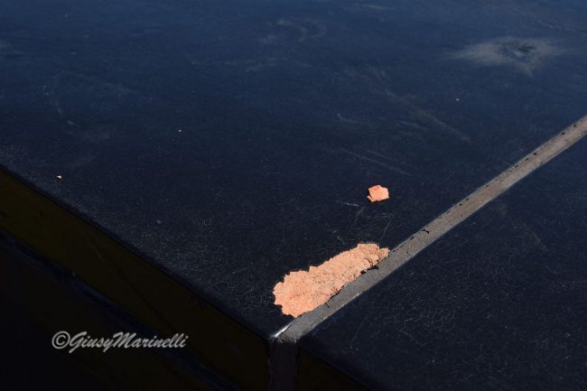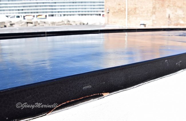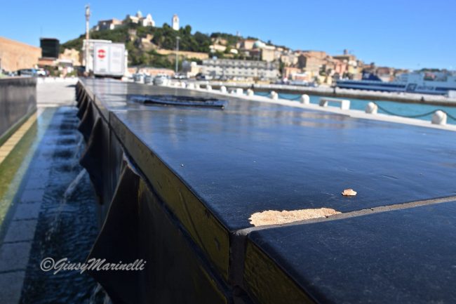 Pedate sopra la struttura e scheggiature che hanno portato via parte della terracotta-ceramica. Perde pezzi la Fontana dei Due Soli, una delle attrazioni principali del porto antico, inaugurata in gran stile nel giugno 2017. Nei giorni scorsi, sull’opera firmata da Enzo Cucchi sono apparsi dei danneggiamenti. Usura? O vandali? Sicuramente, qualcuno è passato sopra le caratteristiche lastre di ceramica, lasciando visibili impronte di scarpe. E poi, in almeno quattro punti, l’opera presenta delle scheggiature. In uno, in particolare, sembra come se la ceramica fosse stata “grattata” via con un oggetto contundente, forse delle chiavi o un coltellino. Lo si può vedere dalla serie di graffi impressi sulla fontana.