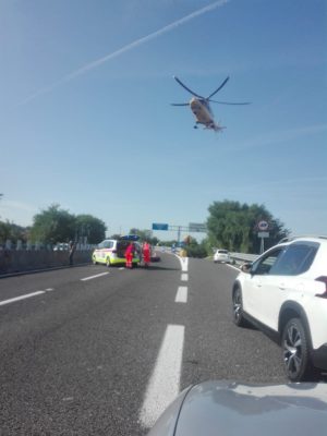 FALCONARA - Scontro tra una moto e un furgone all'altezza dello svincolo dell'aeroporto. Un uomo soccorso in eliambulanza e trasferito a Torrette