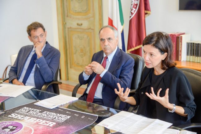 «Illustreremo un mondo senza barriere – prosegue la professoressa Spigarelli – anche grazie a due mostre: “Leggere le pietre per capire il passato”, rivolta ad appassionati e non di archeologia, e “Le parole e i segni: la magia dell’inchiostro”, per uno sguardo ravvicinato all’universo cinese. Poi sei eventi nel palco centrale, in piazza Cesare Battisti, insieme a nove corner sparsi per la città, per 14 diverse attività. Ci rivolgeremo anche ai più piccoli, ai futuri ricercatori, con laboratori dedicati a loro nel nostro CreaHub, dalle 17 alle 21,30. Una festa della ricerca per la città, con oltre 100 ricercatori coinvolti, per far capire alla gente comune quanto l’università sia vicina a lei». In chiusura, in collegamento Skype Sauro Longhi, rettore dell’Università Politecnica delle Marche, che ha sottolineato la peculiarità della collaborazione tra Macerata e Ancona: «Due atenei simili, ma anche molto diversi: siamo entrambi curiosi, ma con settori di riferimento diametralmente opposti. Mi auguro le nostre due città saranno legate ancora, negli anni a venire, anche dopo il termine del mio mandato, per raccontare la bellezza della ricerca. Filosofi e medici, giuristi e ingegneri di domotica, un fil rouge incredibile ci lega tutti quanti: quello del domani, di un futuro radioso».