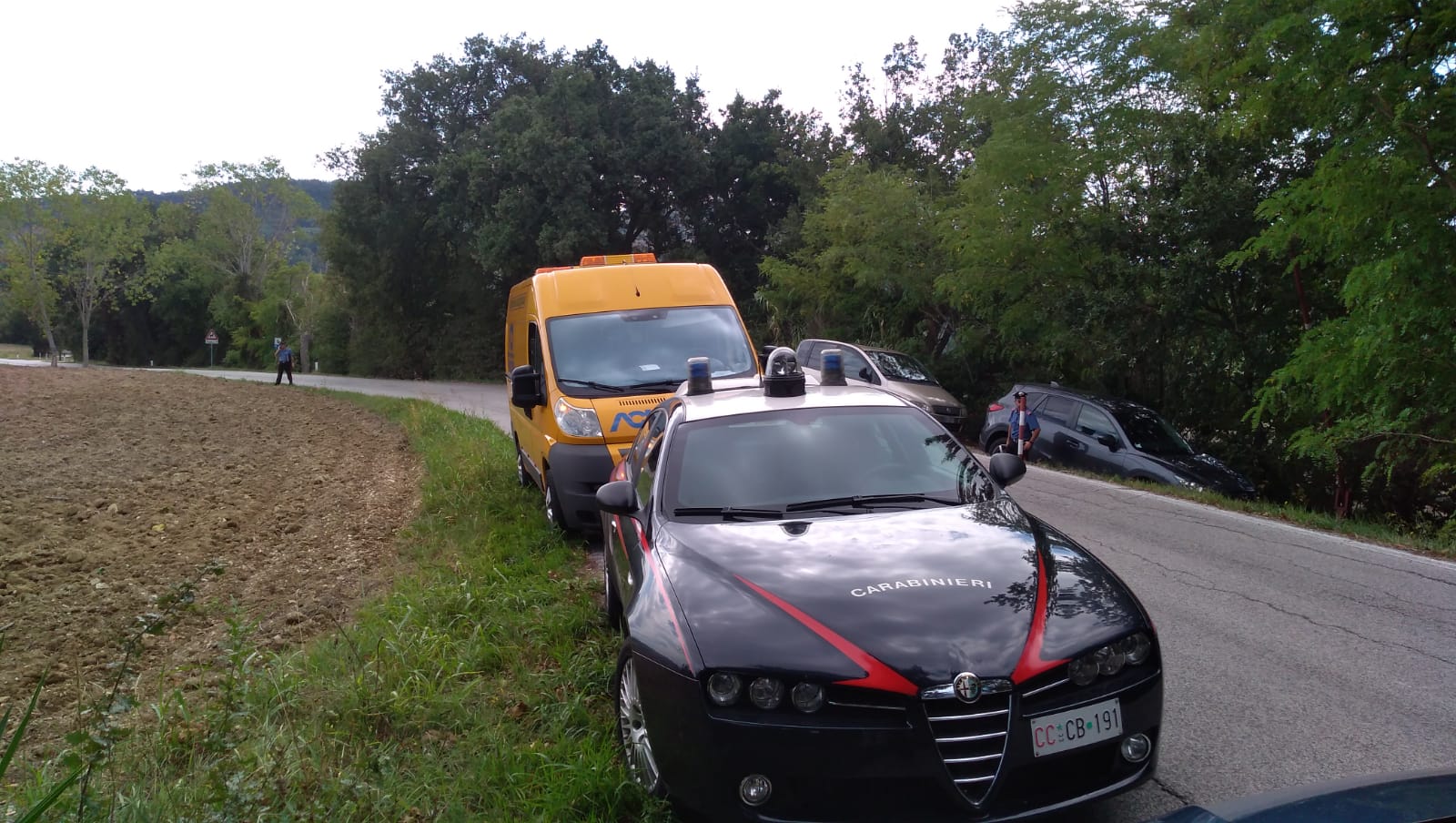 I carabinieri in via Montegalluccio, in fondo a destra si intravede l’auto del giovane in sosta sul passo privato