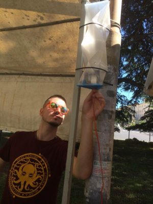 Gli “acchiappapolveri” hanno fatto “boom”, con quello strano e futuristico aggeggio fissato stamattina a un palo della luce tra i banconi della rivendita di libri all’aperto di Luigi Sonnino a piazza Cavour. Uno strumento capace di monitorare il livello di concentrazione delle PM10 e delle ancora più microscopiche e micidiali PM2,5 nell’aria, realizzato all’Hack Lab (HL) dello spa “La Cupa”. Gli “acchiappapolveri” sono Fabrizio Simeone, 24 anni, e Giacomo Guidarelli, di 29, che ad Ancona ci abitano, e sanno bene che le polveri sottili – concentrati di smog e sostanze chimiche – sono tra le quelle più pericolose per la salute fra le varie che inquinano l’atmosfera urbana, in quanto capaci di infilarsi subdolamente negli alveoli polmonari. I due giovani, con l’aiuto di altri frequentatori del laboratorio “hi – teach” dello spazio autogestito del rione Posatora, hanno scelto per l’inaugurazione del marchingegno non a caso la più grande e centrale piazza del capoluogo marchigiano, affollata soprattutto da centinaia di studenti delle medie superiori, aderenti allo sciopero nazionale contro i cambiamenti climatici dell’ormai periodico “Friday for future”.
