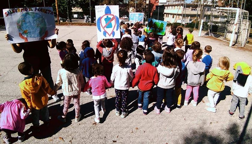 Si può sperare davvero in un futuro migliore se anche i bambini dell’asilo hanno voglia di cambiare il mondo. Un bell’esempio è arrivato stamattina dagli alunni della scuola dell’infanzia ‘Tombari’ di Ancona. Piccoli di 4 e 5 anni che insieme alle loro insegnanti hanno aderito al #Fridaysforfuture. Mentre in piazza Cavour l’onda colorata degli studenti più grandi manifestava per il Global climate strike anconetano, i bimbetti della ‘Tombari’ partecipavano alla Giornata nazionale per la difesa dell’ambiente, offrendo un contributo a modo loro. Sfilando in corteo per le strade del quartiere delle Palombare, mano nella mano, con disegni e cartelli pro ambiente colorati da loro stessi, hanno urlato in coro lo slogan: «Salviamo il mare, salviamo la natura, salviamo il pianeta, plastic free!!». Una vera gioia per chi li ha incontrati.