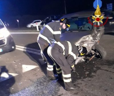 Schianto tra due auto sulla Statale 16, all’incrocio con la zona industriale di Numana. E’ di tre feriti il bilancio dell’ennesimo incidente stradale che si è verificato nel tardo pomeriggio di ieri su questo punto critico della viabilità, all’altezza della ditta Caltec. Alle ore 19,30 circa i vigili del fuoco di Osimo sono intervenuti su questo tratto della Adriatica che attraversa il territorio comunale di Castelfidardo per soccorrere i due automobilisti. Per cause in fase di ricostruzione da parte dei carabinieri, le due vetture si sono scontrate all’altezza del bivio. Le tre persone che erano a bordo sono state affidate al personale del 118. I vigili del fuoco hanno messo insicurezza i mezzi coinvolte e lo scenario dell’incidente. Qualche disagio al traffico: la strada, per la durata dell’intervento è rimasta aperta al transito a senso unico alternato.