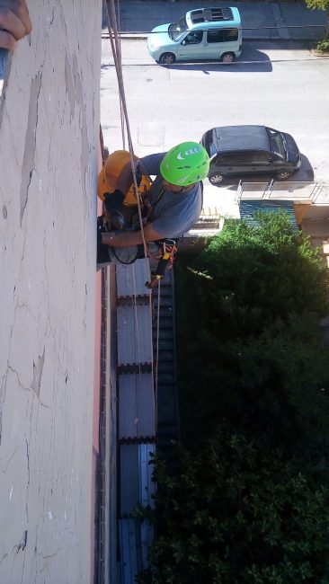 Per sistemare le facciate della scuola Giulio Cesare arrivano gli operai acrobati. Il Comune di Falconara si è affidato infatti a un’azienda di edilizia acrobatica, specializzata in interventi su funi, per mettere in sicurezza il plesso di via della Repubblica. Con l’utilizzo di corde gli operai si calano fino al punto della facciata da trattare ed evitano così di montare e smontare impalcature, il tutto in completa sicurezza. Una parte dell’intervento è già stata terminata, tanto che nei giorni scorsi è stato possibile rimuovere i ponteggi di protezione per il passaggio pedonale sul lato verso via Mameli e a breve verranno rimossi quelli sul lato mare, sul retro della scuola. L’intervento, per un totale di 10mila euro, è partito dalla battitura delle pareti esterne per eliminare l’intonaco pericolante, cui è seguito il montaggio di reti di protezione. Il completamento della facciata sul retro è previsto per la prossima settimana. Seguirà la sistemazione del marciapiede sottostante. Un altro intervento importante, per un investimento di 9mila euro, ha riguardato la scuola media Galileo Ferraris, dove all’inizio di settembre è stata ripristinata la facciata, dopo il danneggiamento improvviso di una porzione in vetro-mattone sopra il portico dell’ingresso principale. I lavori sono stati eseguiti d’urgenza e si sono conclusi prima dell’inizio delle lezioni. Sono infine in corso i lavori di ristrutturazione del giardino della scuola Rodari: è stato livellato e sistemato il fondo, dove è stata realizzata una nuova pavimentazione sotto il pergolato in attesa dell’installazione dei giochi, prevista a breve.
